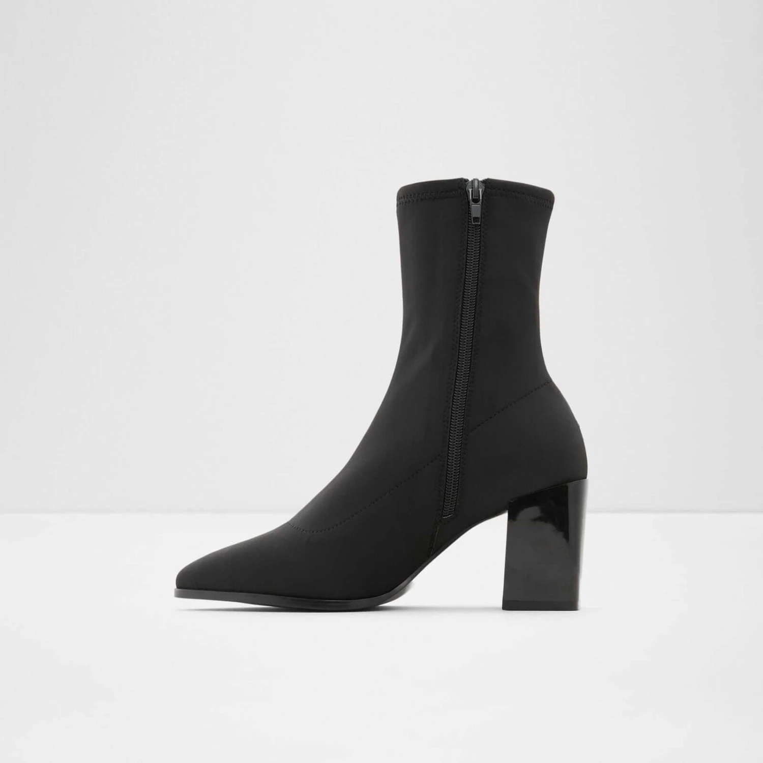 #Style notes *A slightly slanted block heel and a sharp pointy toe add major character to these fitted ankle boots. #Details * Colour Black #Measurements *Heel height: 2.75 inches *Shaft Height: 6.5 inches