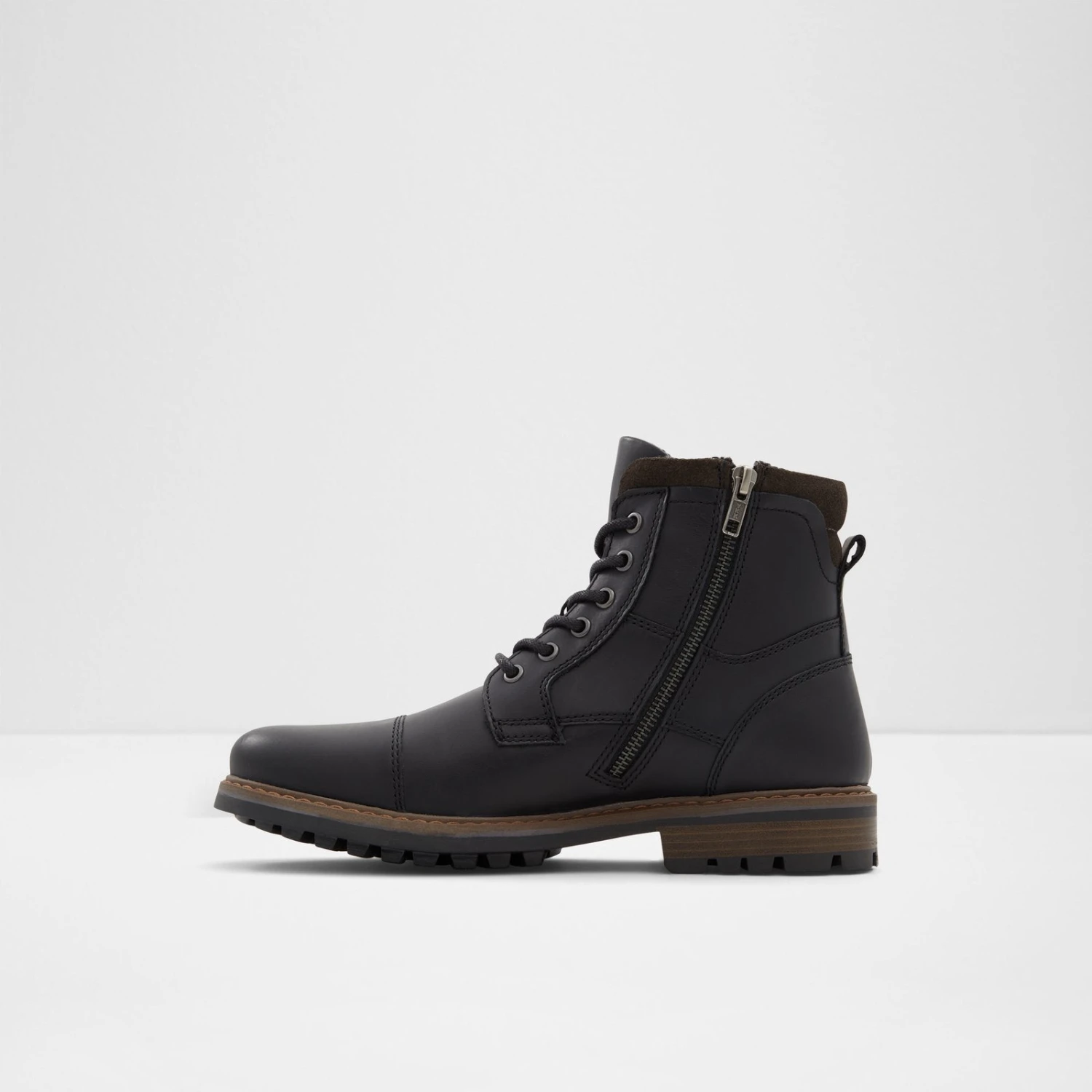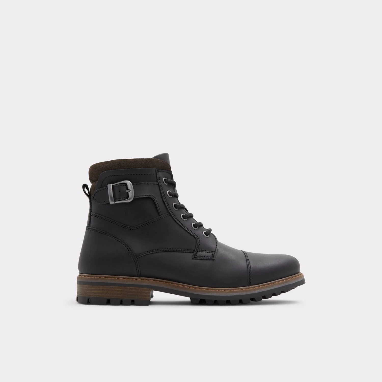#Style notes *Make a stand with these military inspired boots with a classic lace up front for ease of wear. #Details * Lace-up boot * Closed almond toe * Laces closure * Buckle closure * Colour Black #Materials *Upper: Leather *Main: Smooth *Sole: Rubber