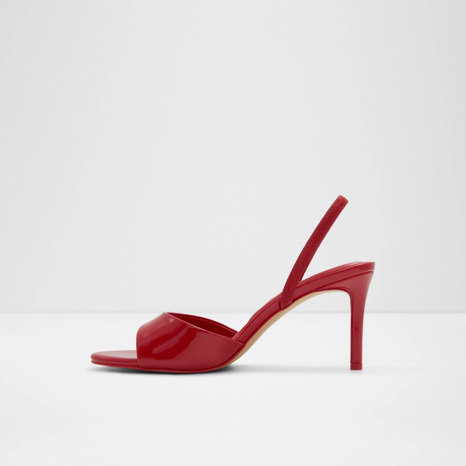 #Style notes * #Details * Sling back heeled sandal * Open round toe * Stiletto heel * Slip on * Colour Red #Materials *Upper: Synthetic *Main: Patent *Sole: Rubber #Measurements *Heel height: 3.0 inches