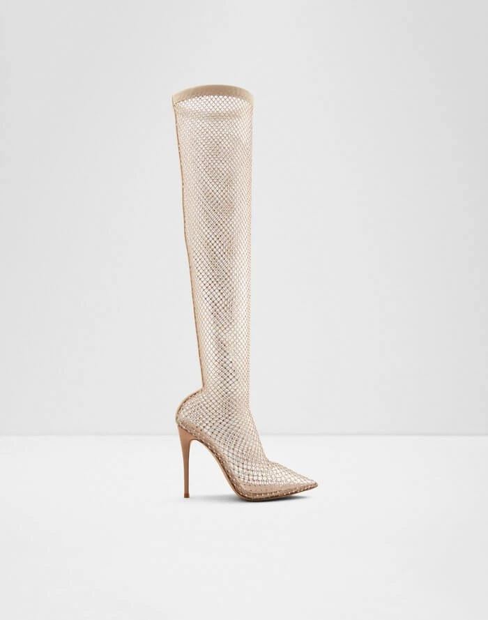 #Style notes * #Details * Over-the-knee boot * Pointy toe * Stiletto heel * Slip on * Rhinestone embellishment * Colour Bone #Materials *Upper: Textile *Sole: Rubber #Measurements *Heel height: 4.0 cm *Shaft Height: 19.5 cm *Circumference: 13.5 cm