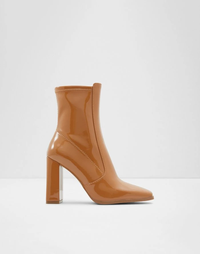 #Style notes *High block heel and modern square toe add polished appeal to these outfit-making ankle boots. #Details * Ankle boot * Closed square toe * Zipper closure * Colour Dark Beige #Materials *Upper: Synthetic *Main: Patent *Sole: Rubber #Measurements *Heel height: 3.75 cm *Shaft Height: 6.25 cm *Circumference: 10.0 cm