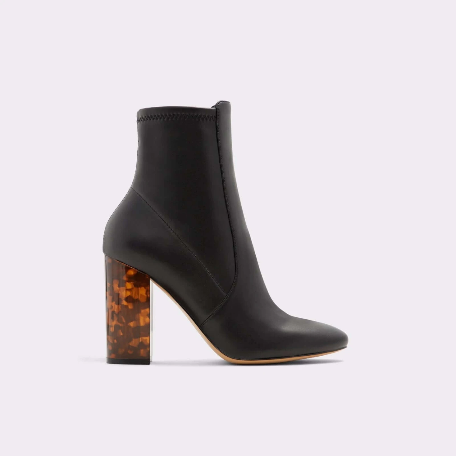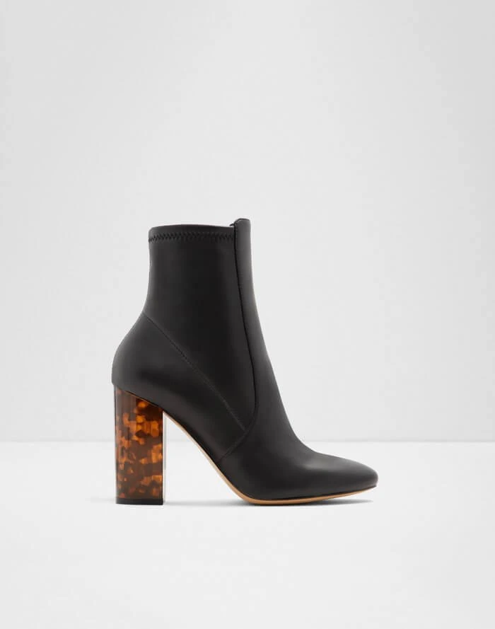 #Style notes *Pointed toes and block heels are currently the rage and this boot fits the bill. Zipper back and modern euro shape works equally well with skirts as it does with your sexiest jeans. #Details * Ankle boot * Almond toe * Block heel * Zipper closure * Colour Black Multi #Materials *Upper: Synthetic *Sole: Rubber #Measurements *Heel height: 9.5 cm *Shaft Height: 12.5 cm