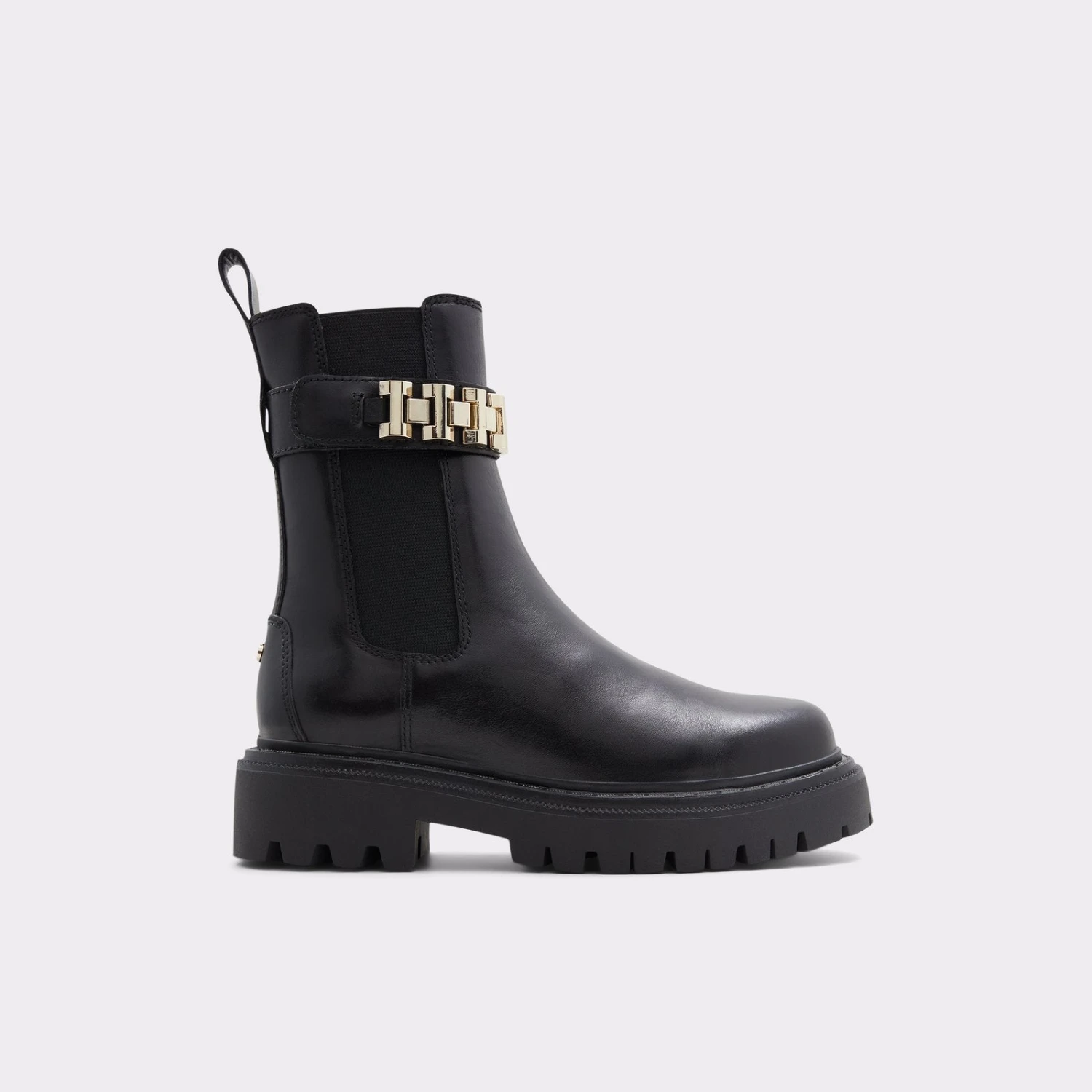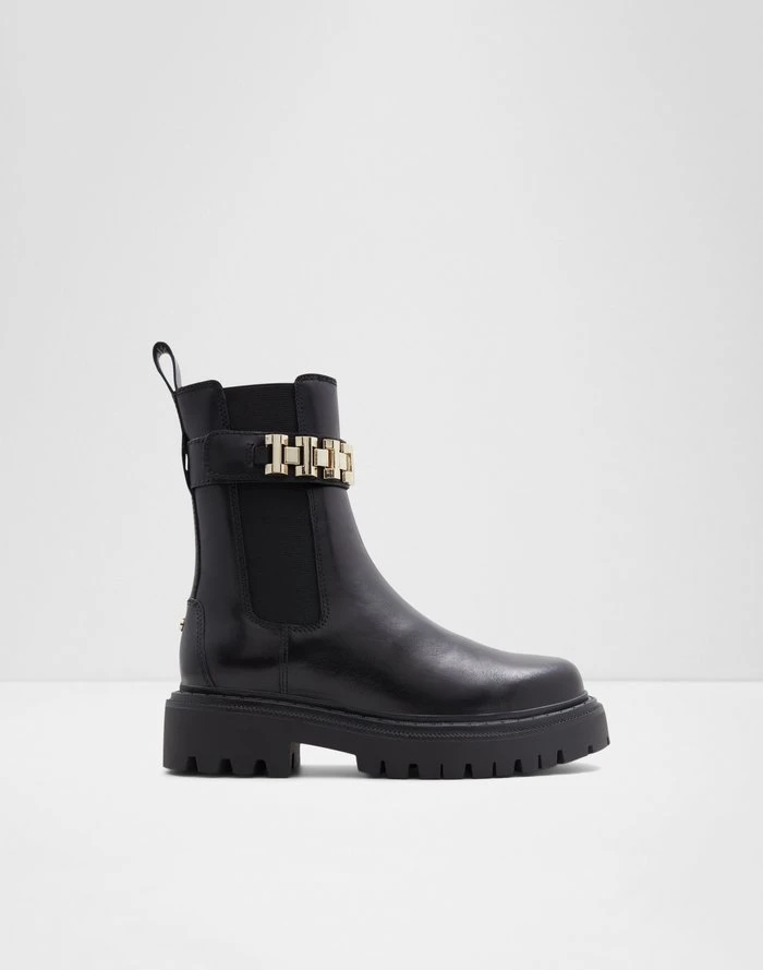 #Style notes *A modern twist on the iconic chelsea silhouette, this high shaft bootie with a statement lug sole is fashion’s new front-runner. #Details * Chelsea boot * Closed round toe * Lug sole * Slip-on * Decorative chains * Colour Black #Materials *Upper: Leather *Main: Smooth *Sole: Rubber #Measurements *Shaft Height: 7.0 cm