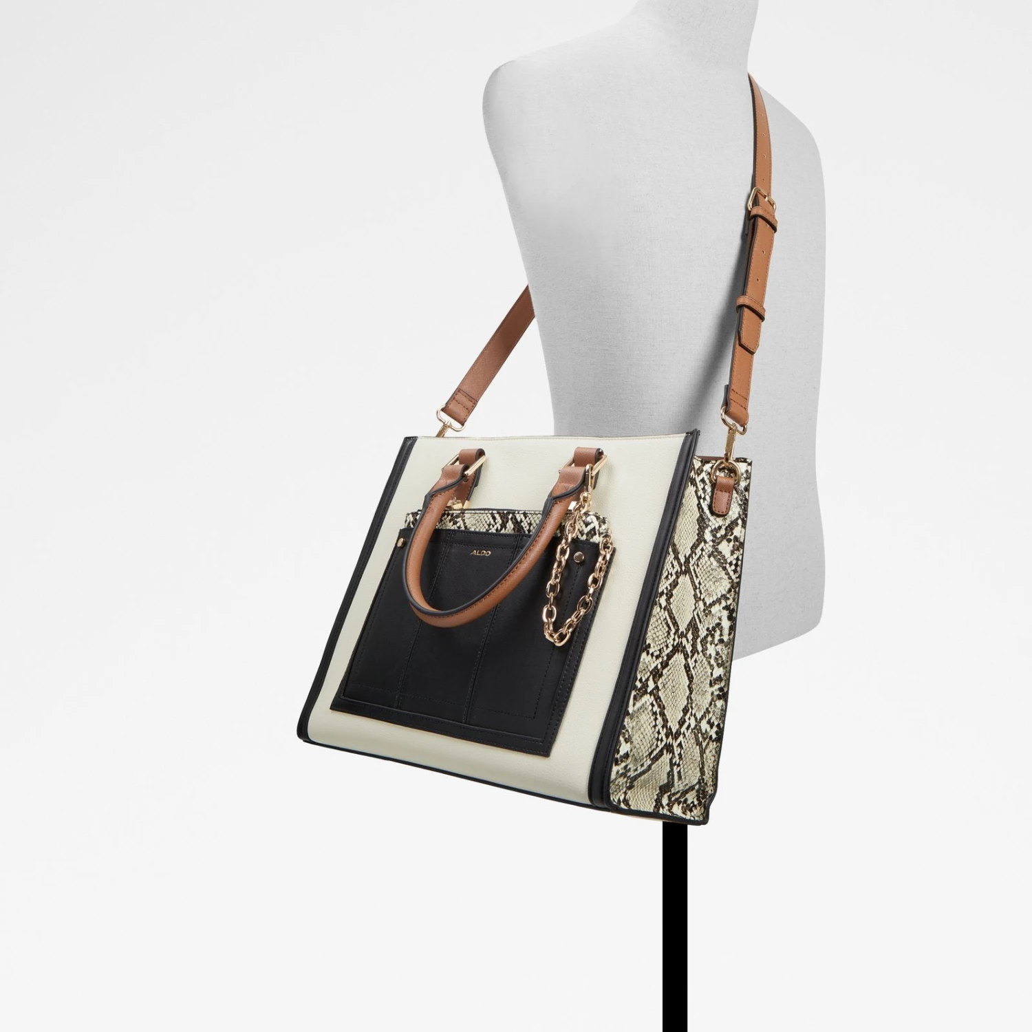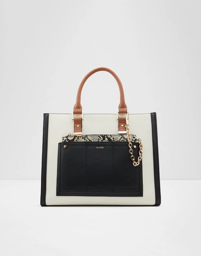 #Style notes * This bold tote bag is perfect for the morning commute with plenty of space and a removable pouch. #Details * Tote bag * Zipper closure * Exterior front pocket * Interior compartment * Removable adjustable crossbody strap * Colour Bone Multi #Materials *Upper: Synthetic *Main: Mixed materials #Measurements *Handle Drop Length: 5.0 cm *Strap Drop Length: 23.0 cm