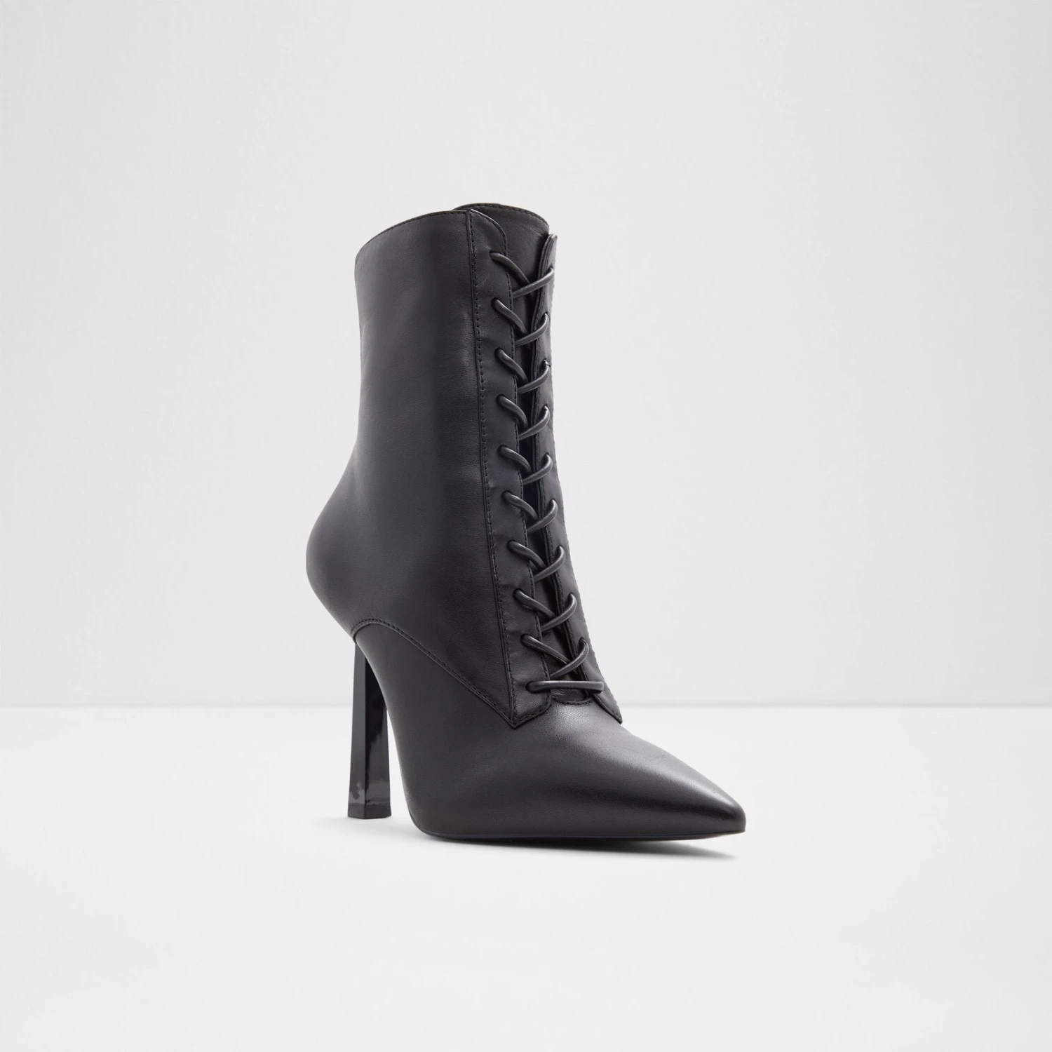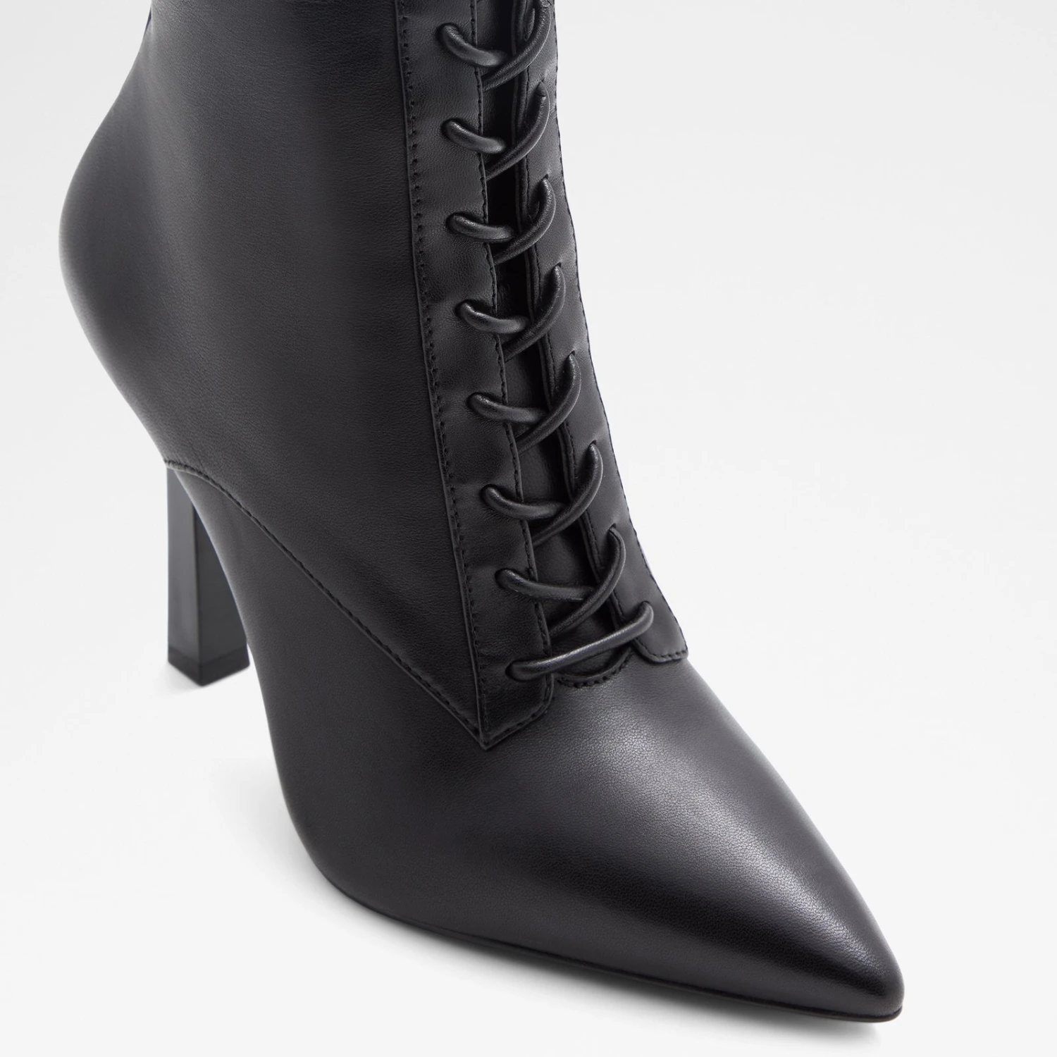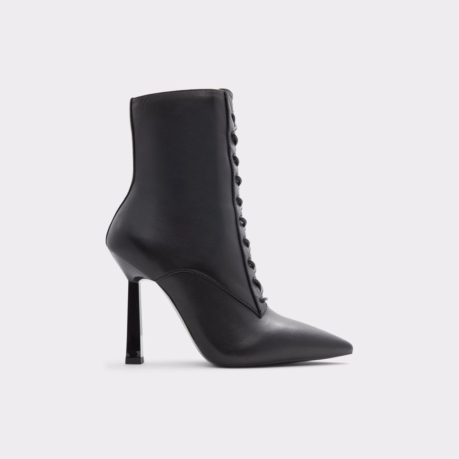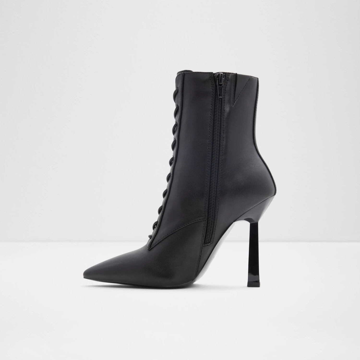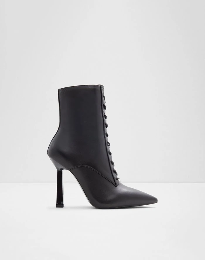 #Style notes *Sharp pointy toe, architectural heel, sleek lace-up silhouette. What’s not to love about these striking ankle boots? #Details * Lace-up boot * Closed pointy toe * Laces closure * Colour Black #Materials *Upper: Leather *Main: Smooth *Sole: Rubber #Measurements *Heel height: 3.75 cm *Shaft Height: 5.0 cm *Circumference: 10.0 cm