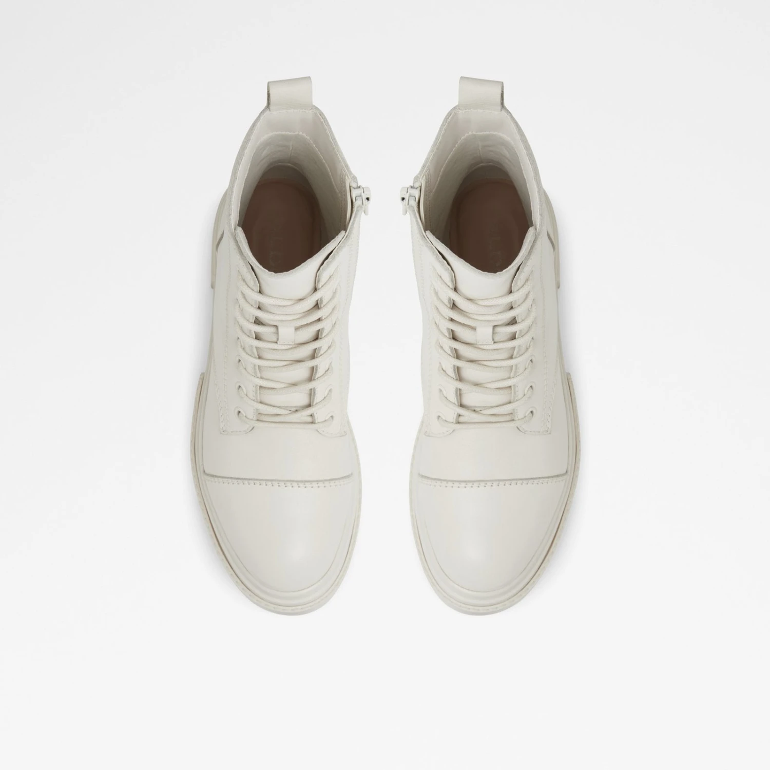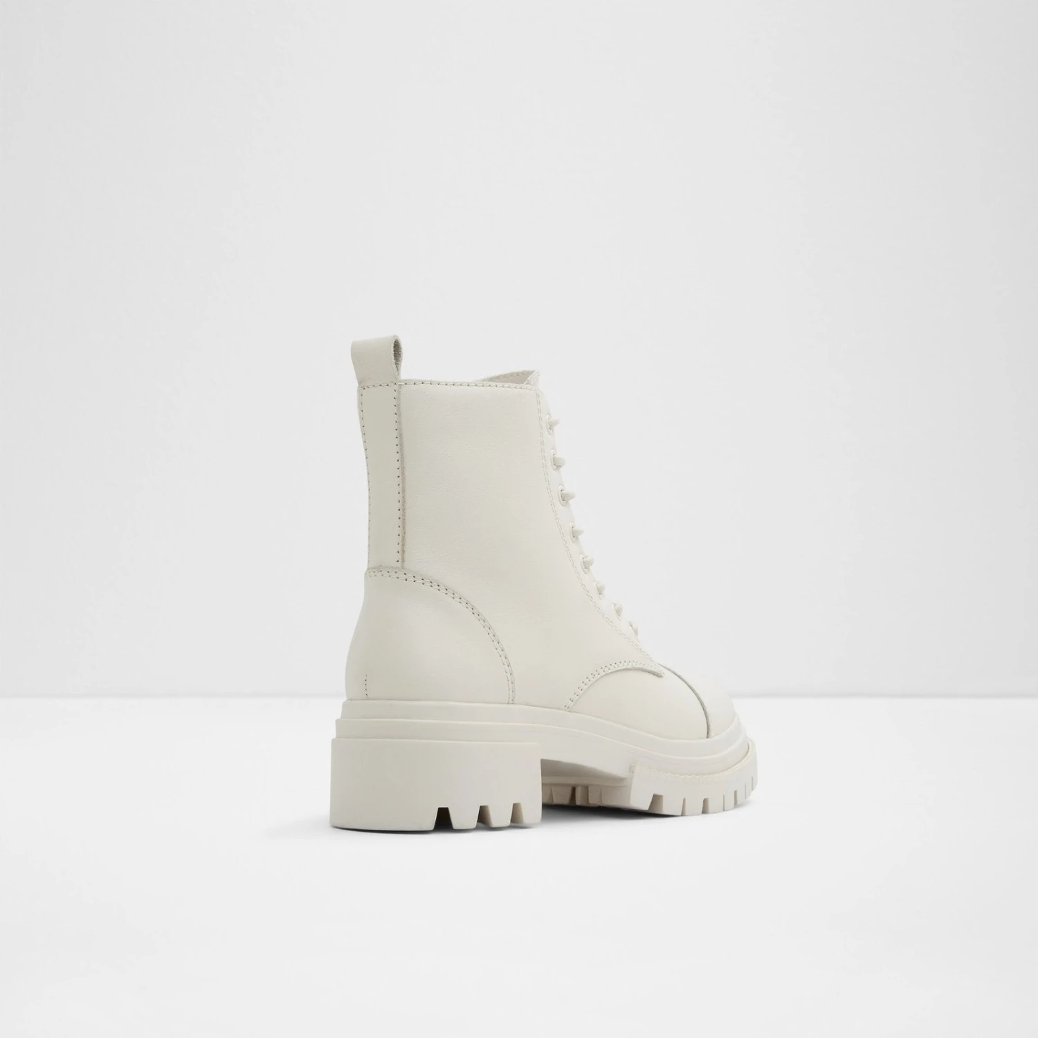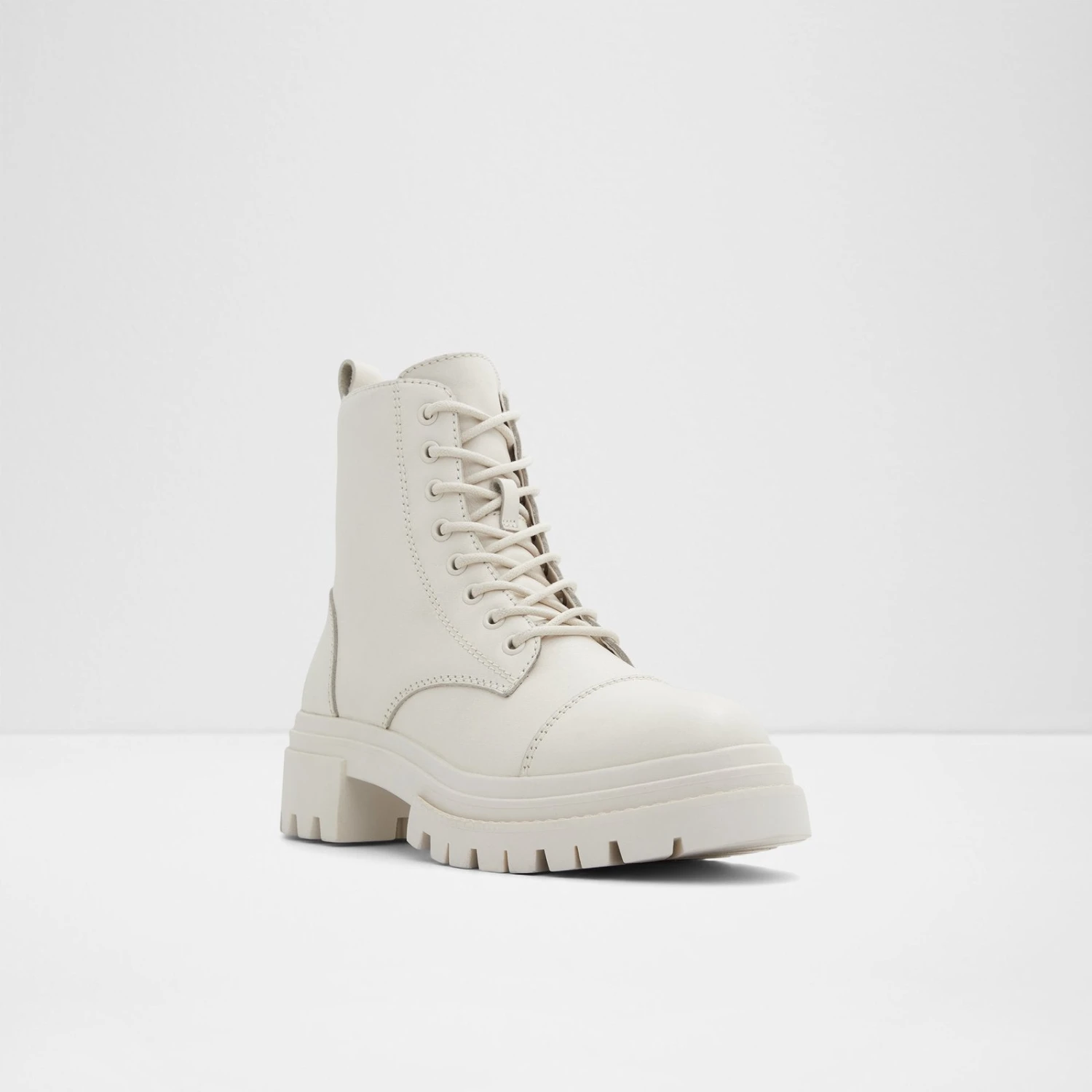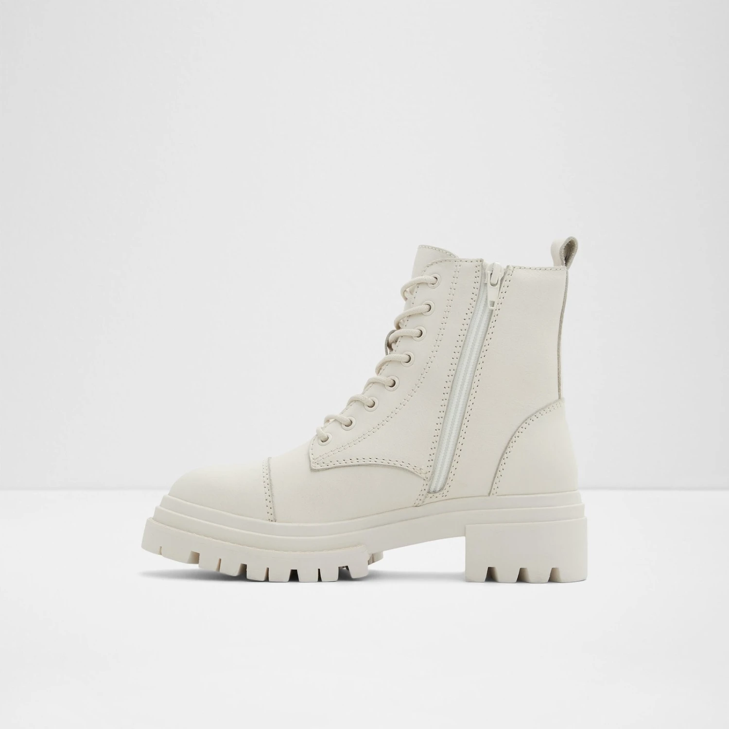 #Style notes *Upgrade your boot rotation in show-stopping combat boots that boast major cool girl vibes. #Details * Combat boots * Closed round toe * Lug sole * Zipper closure * Colour White #Materials *Upper: Leather *Main: Smooth *Sole: Rubber #Measurements *Heel height: 1.5 cm *Shaft Height: 5.0 cm *Circumference: 11.0 cm