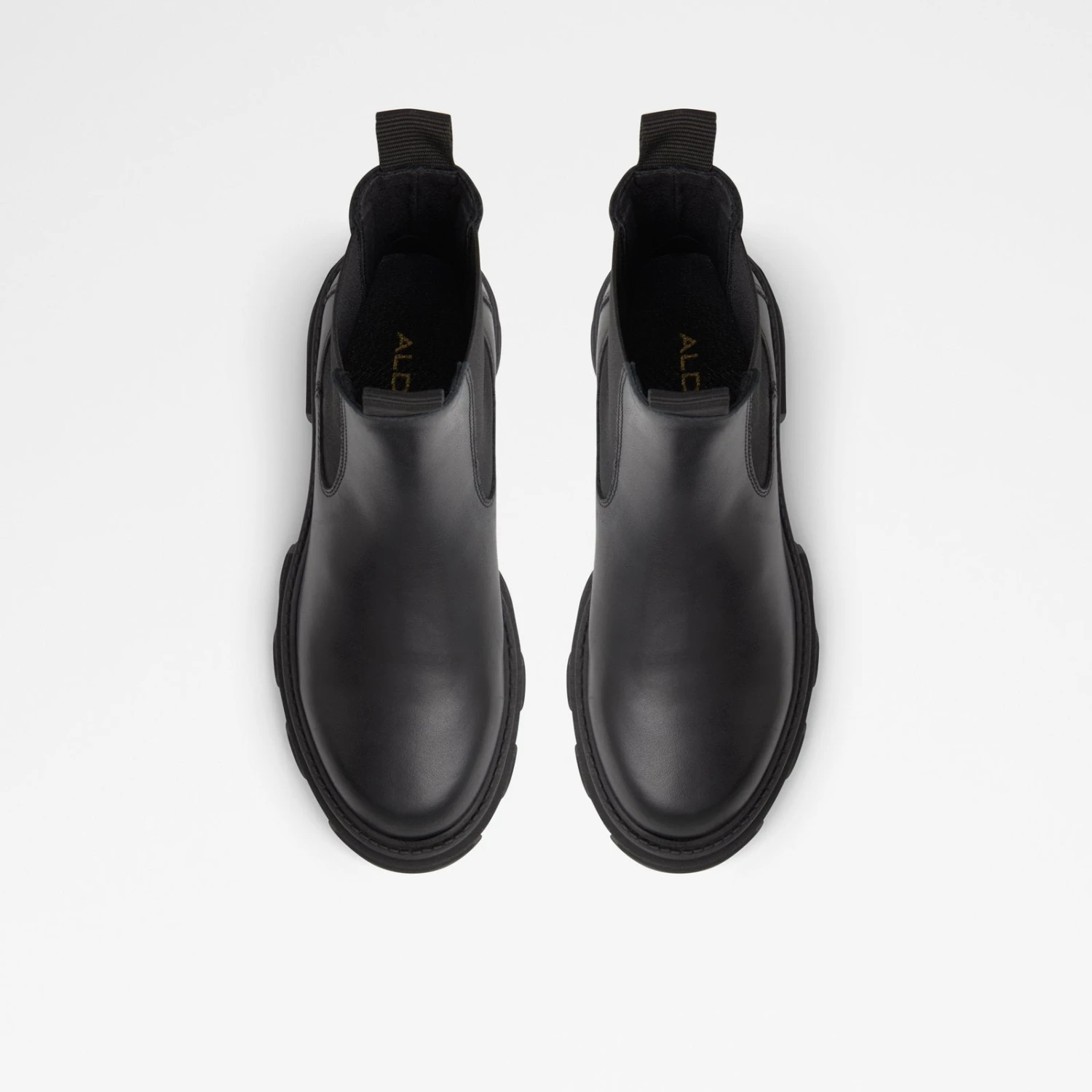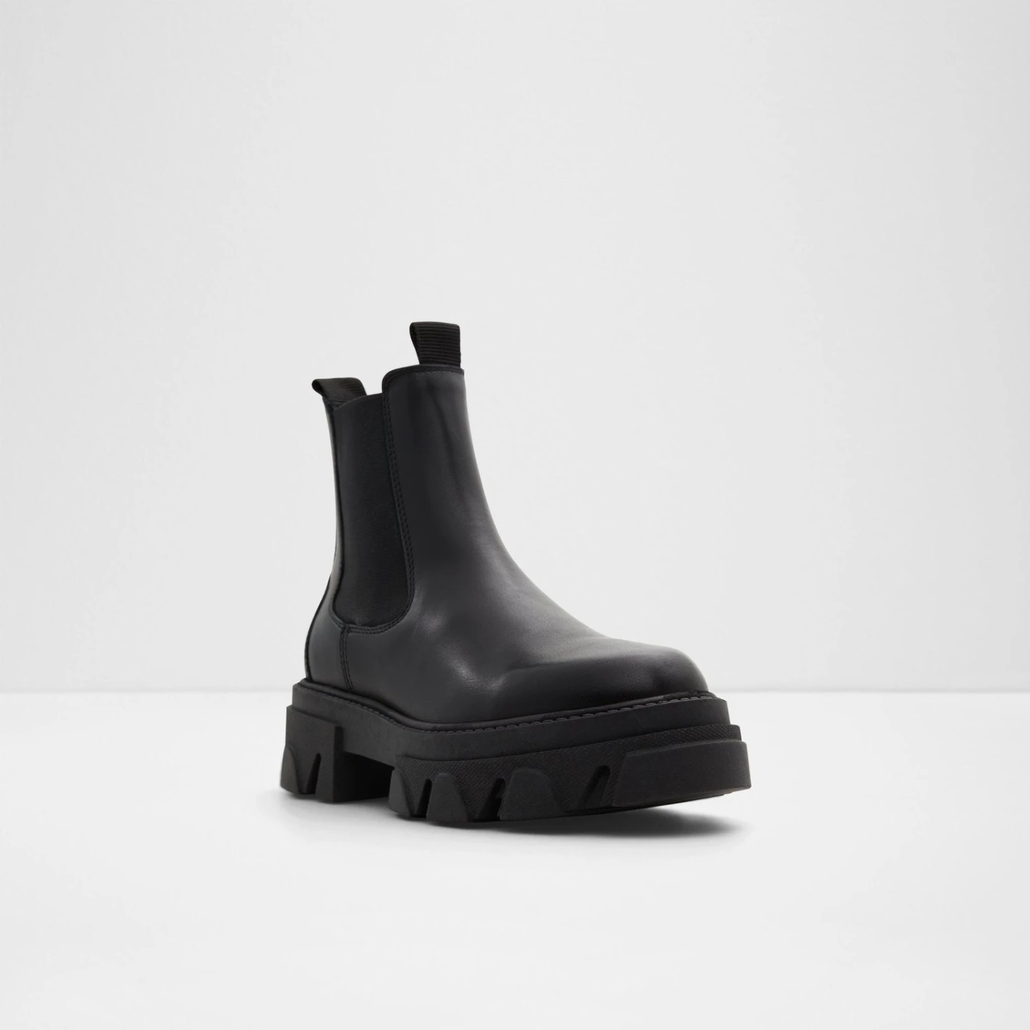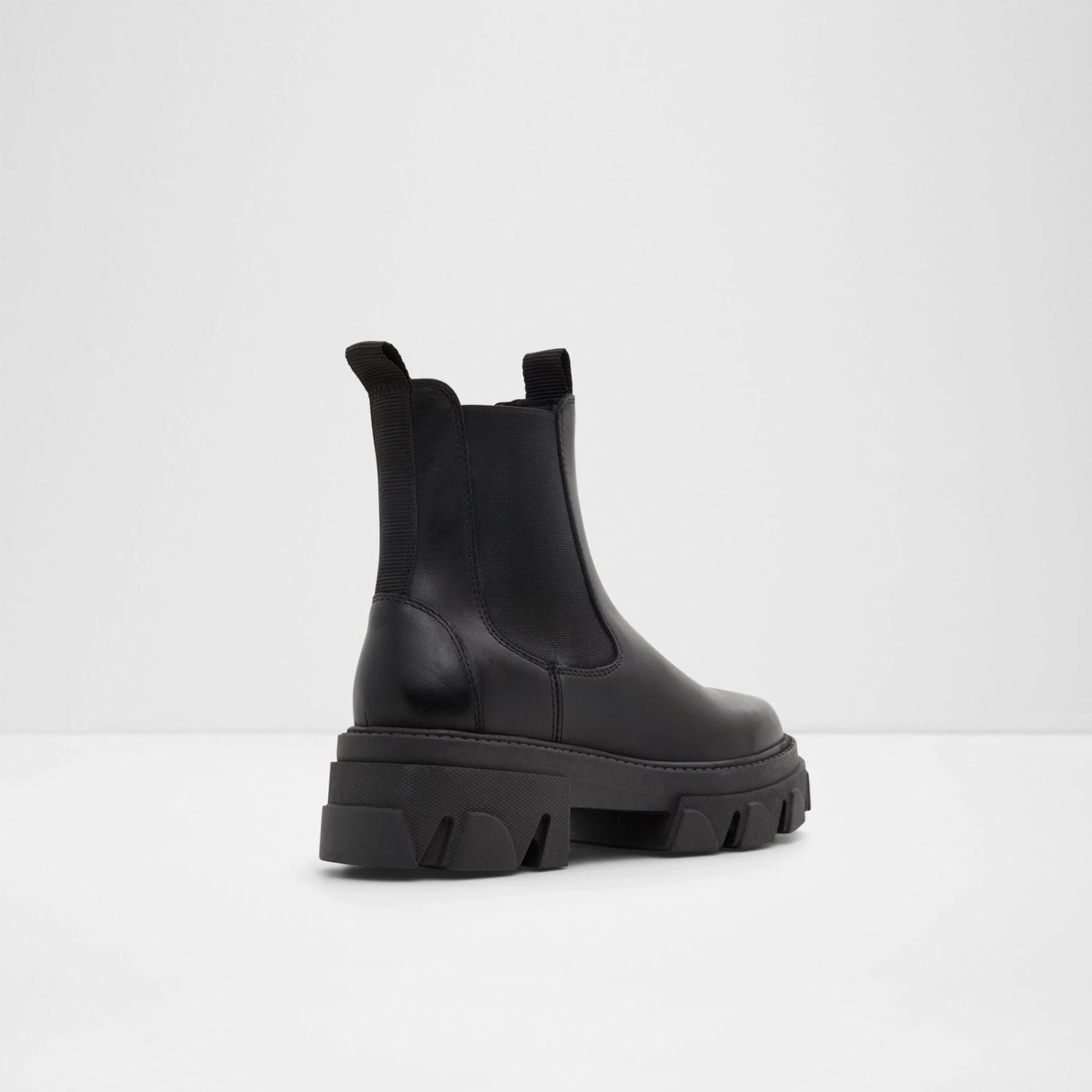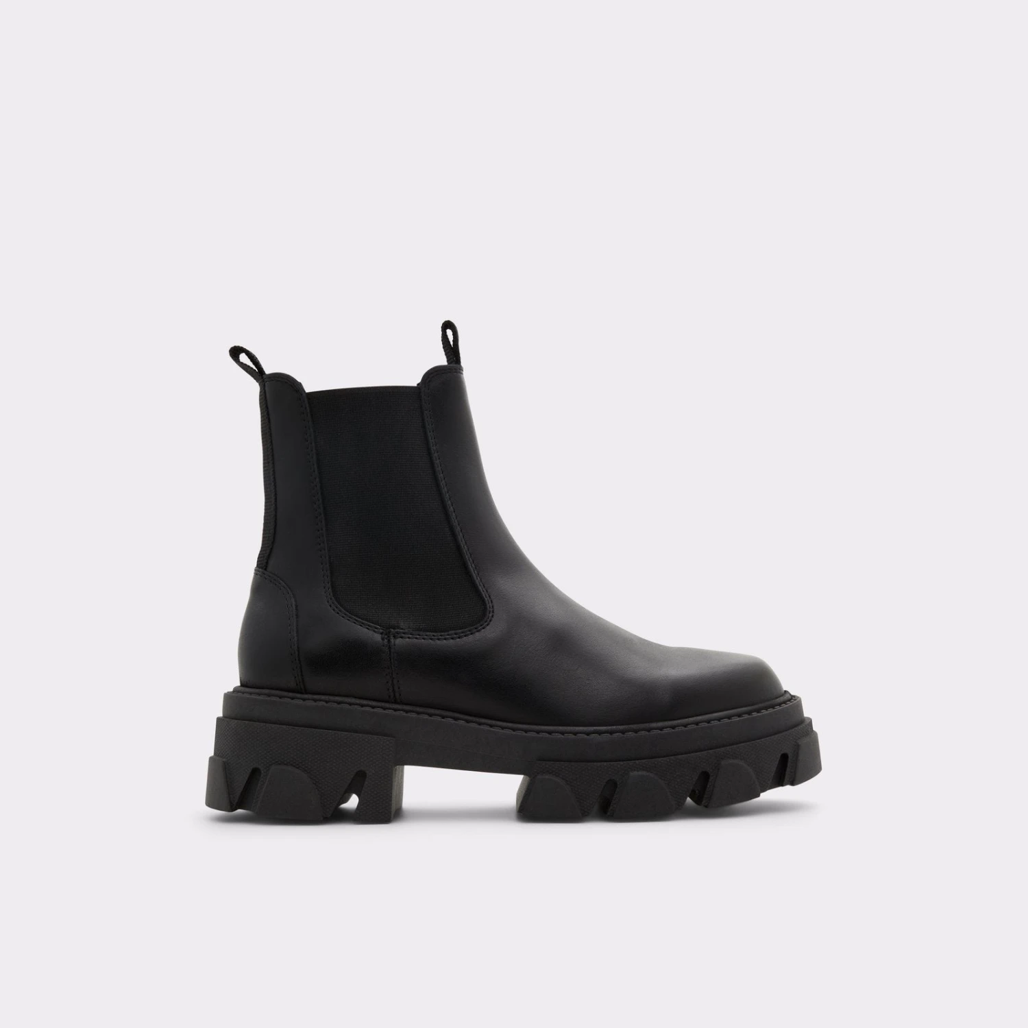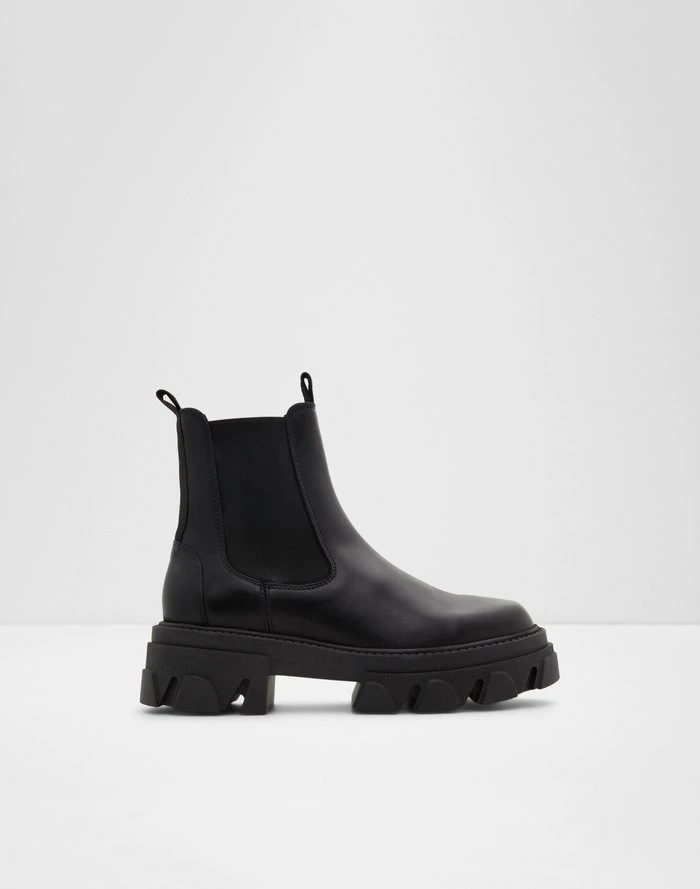 #Style notes *Indulge in this season’s most coveted trend with these style-defining chelsea boots adorned with chunky lug soles. #Details * Chelsea boot * Closed round toe * Lug sole * Slip-on * Side elastics * Colour Black #Materials *Upper: Leather *Main: Smooth *Sole: Rubber #Measurements *Heel height: 2.25 cm *Shaft Height: 5.75 cm
