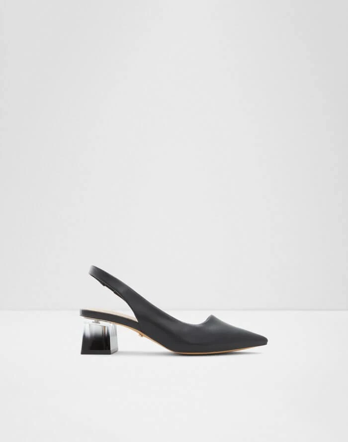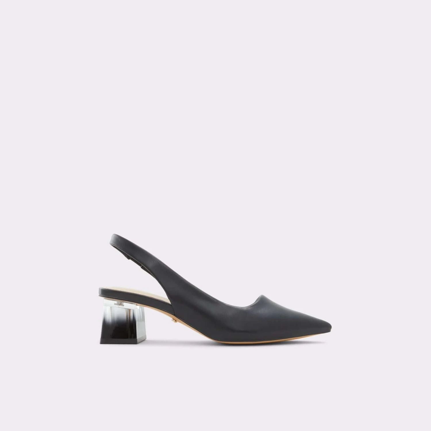 #Style Notes *Block it out. These chunky slingback heels will take you everywhere all season long. Stay on-trend with a pointed toe silhouette. Pair them with jeans and a tee for a cool, minimalist look. #Details *Colour: Black *Heel Height: 2.00 In (5.08 Cm) *Heel Type: Block (Thick) #Materials *Main Material: Synthetic *Sole Material: Rubber