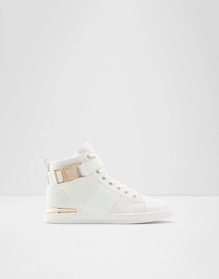 #Style notes *Sporty yet sleek, these monochromatic high top sneakers know how to stand out. The buckle accent detail adds an extra touch of flair to an otherwise classic high top silhouette. #Details * High top sneaker * Round toe * Laces closure * Colour White #Materials *Upper: Synthetic *Sole: Synthetic