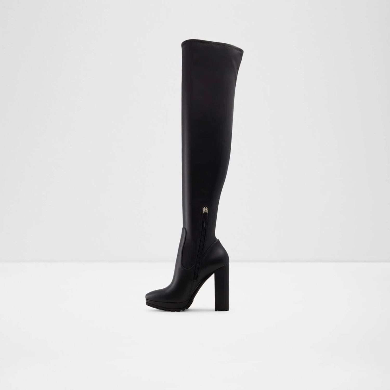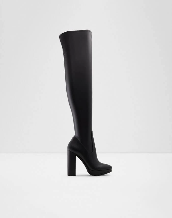 #Style notes * #Details * Over-the-knee boot * Almond toe * Block heel * Zipper closure * Colour Black #Materials *Upper: Synthetic *Main: Smooth *Sole: Rubber #Measurements *Heel height: 3.75 cm *Platform height: 0.25 cm *Shaft Height: 22.0 cm