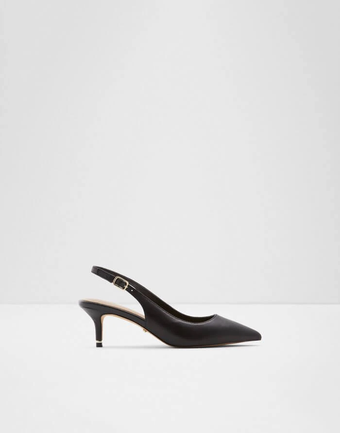 #Style Notes *A modern take on the classic kitten heel. With a buckle fastener and soft leather, these pointy toe pretties are the pinnacle of style. Whether you’re out to lunch or at work, you’ll be sure to impress. #Details *Colour: Black *Heel Height: 2.00 In (5.08 Cm) *Heel Type: Kitten #Materials *Main Material: Leather *Sole Material: Rubber