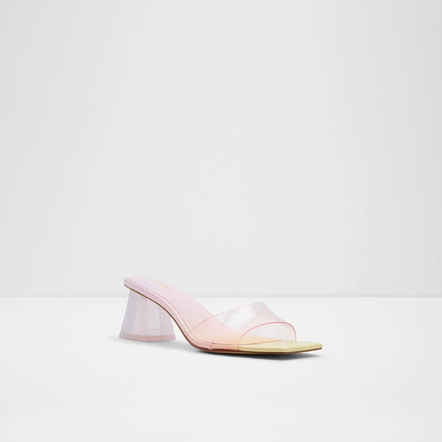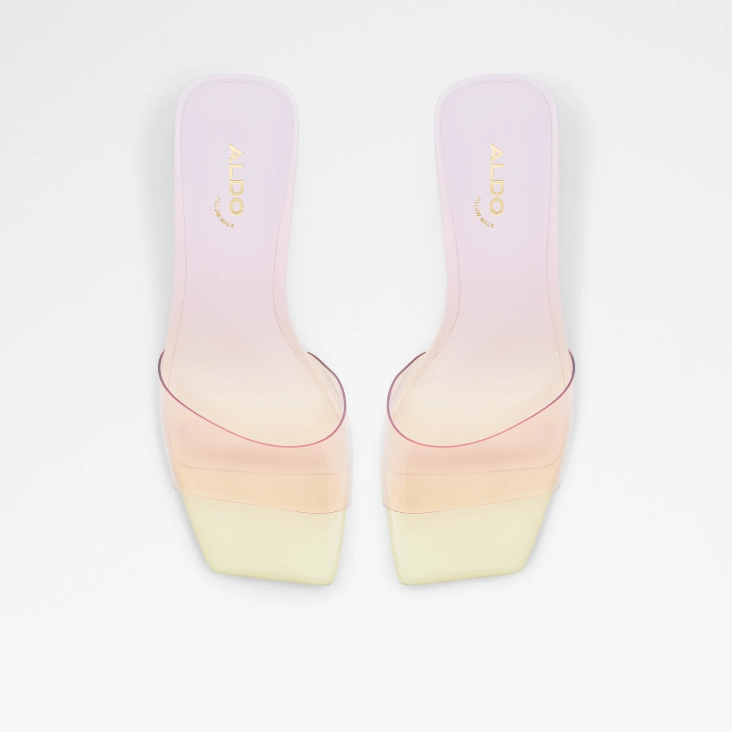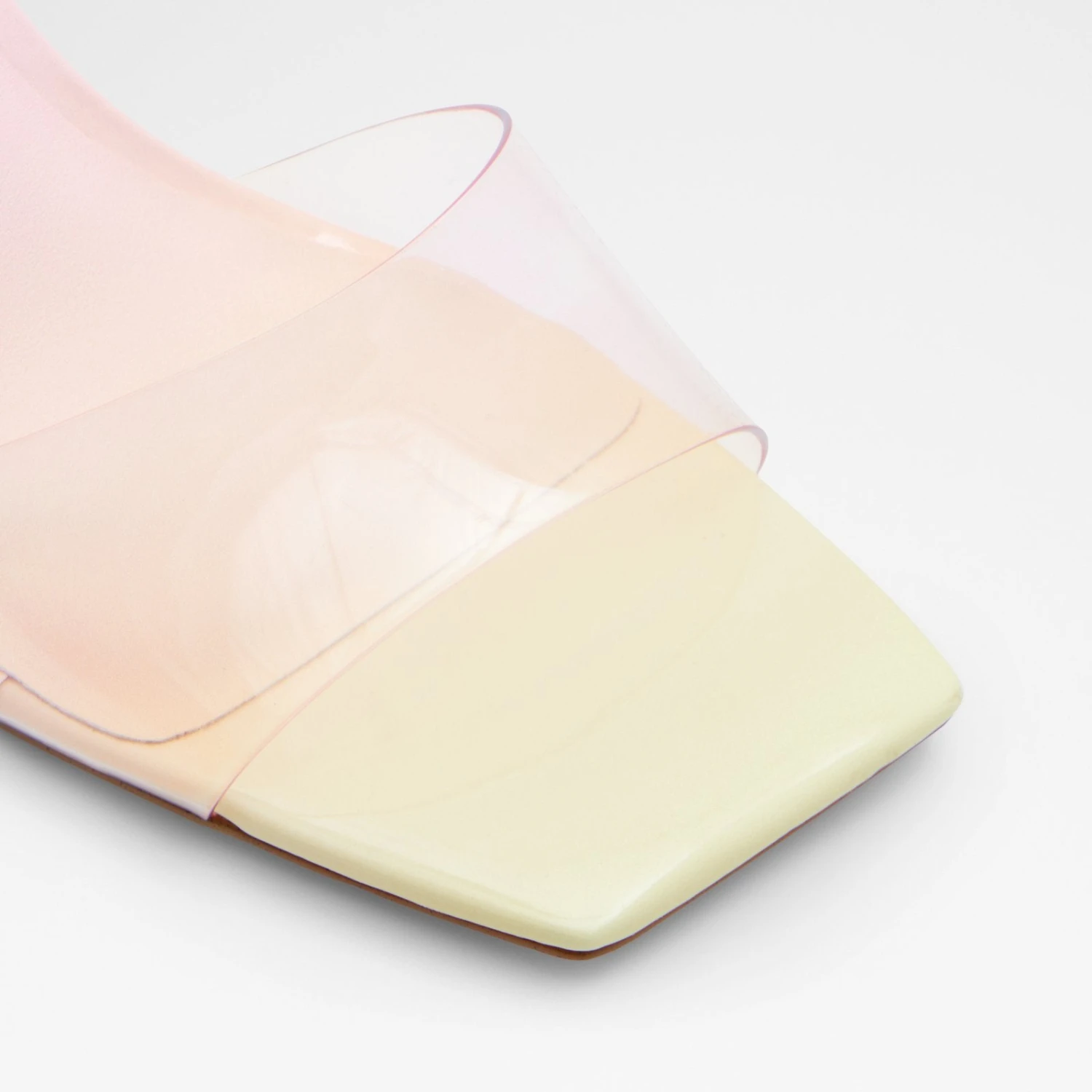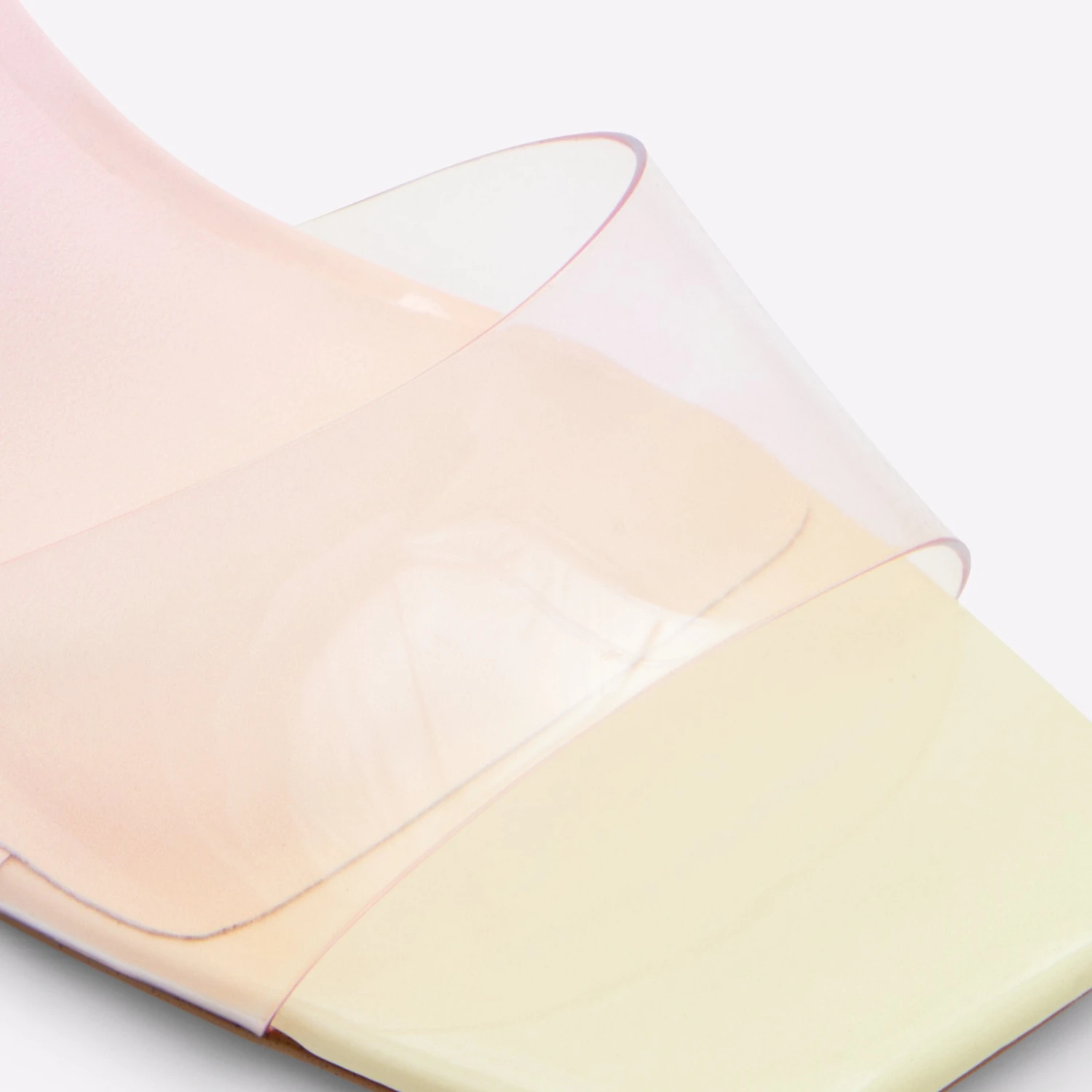 #Style notes *Sculpted kitten heel, bold square toe and comfy padded insoles…These aren’t your basic mules and we’re here for it! #Details * Heeled mule * Open square toe * Slip-on * Colour Pastel Multi #Materials *Upper: Synthetic *Main: Clear *Sole: Rubber #Measurements *Heel height: 5.7 cm