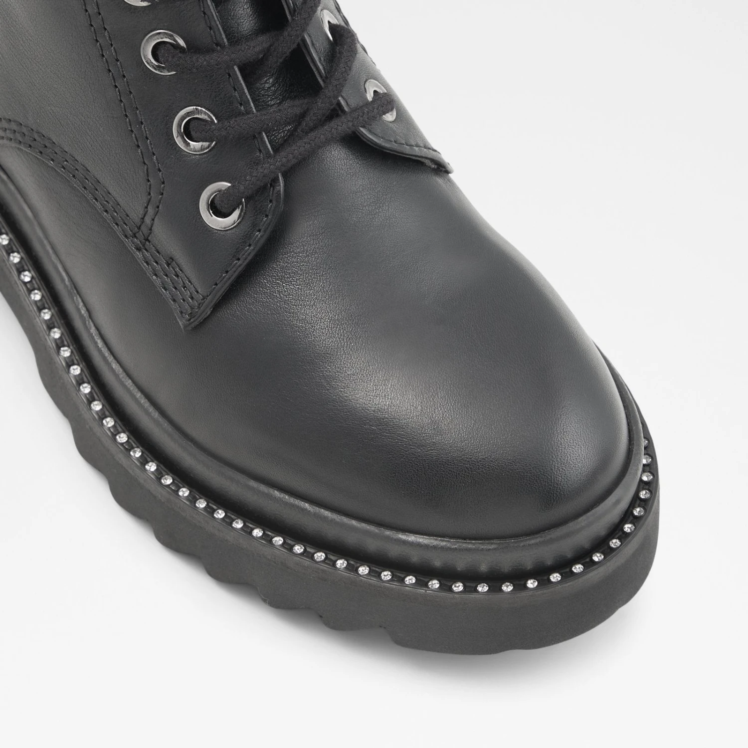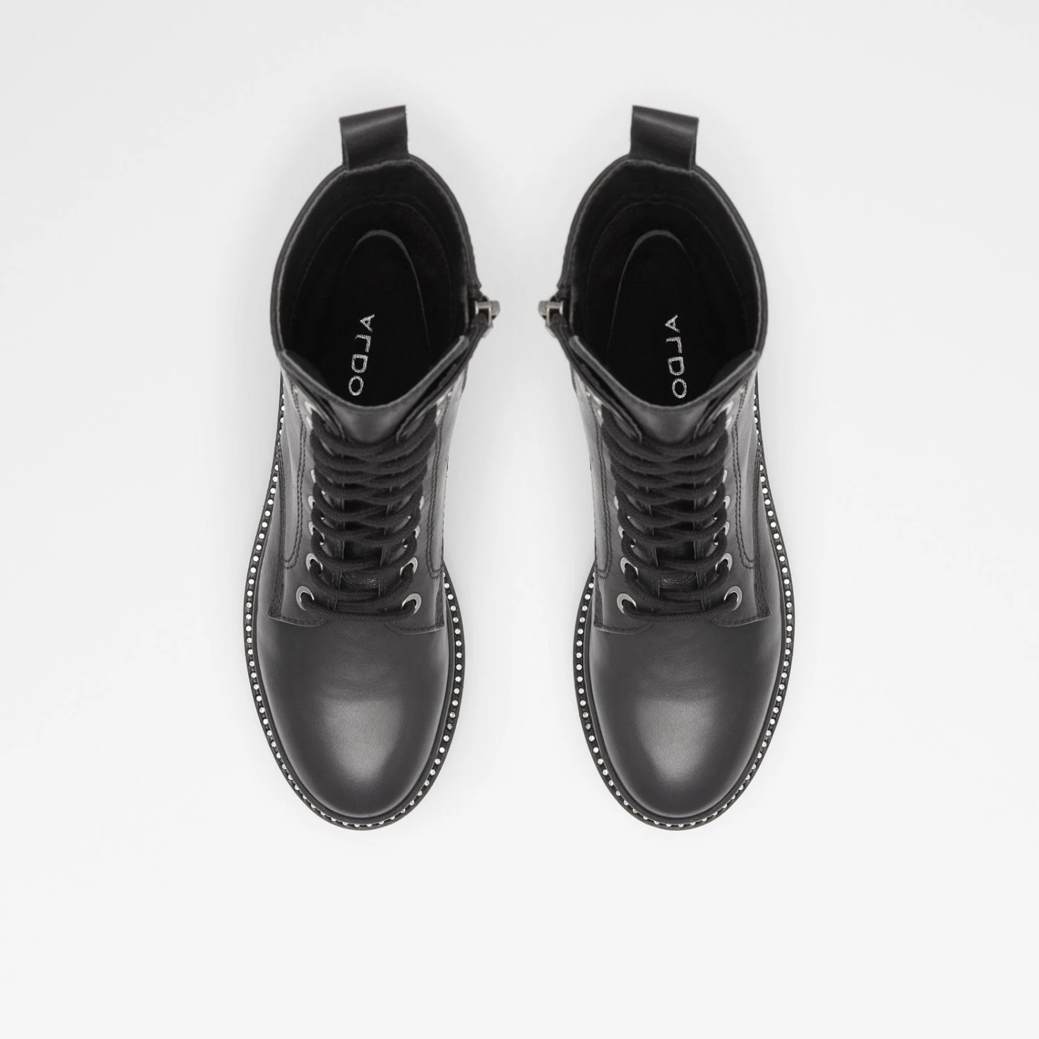 #Style notes * Make a stand with these military inspired boots with a classic lace up front and side zip detail for ease of wear. #Details * Colour Black #Measurements *Heel height: 4.0 cm *Shaft Height: 25.0 cm