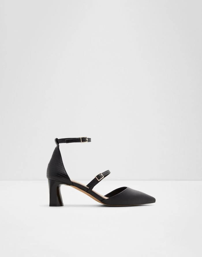 #Style notes *Double boucle detailing add extra charm to these pointy toe heels. #Details * Strappy heeled shoe * Closed pointy toe * Buckle closure * Colour Black #Materials *Upper: Synthetic *Main: Smooth *Sole: Rubber #Measurements *Heel height: 2.0 cm