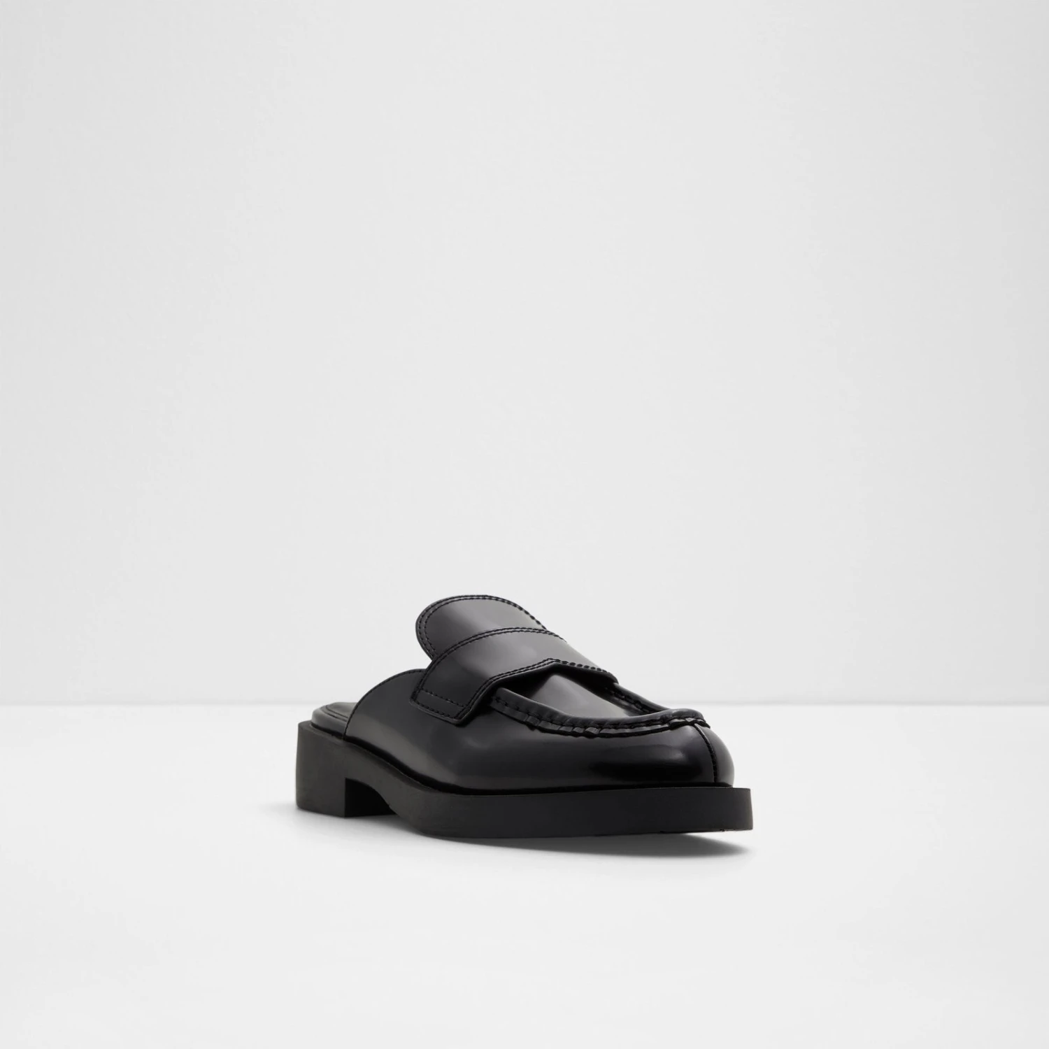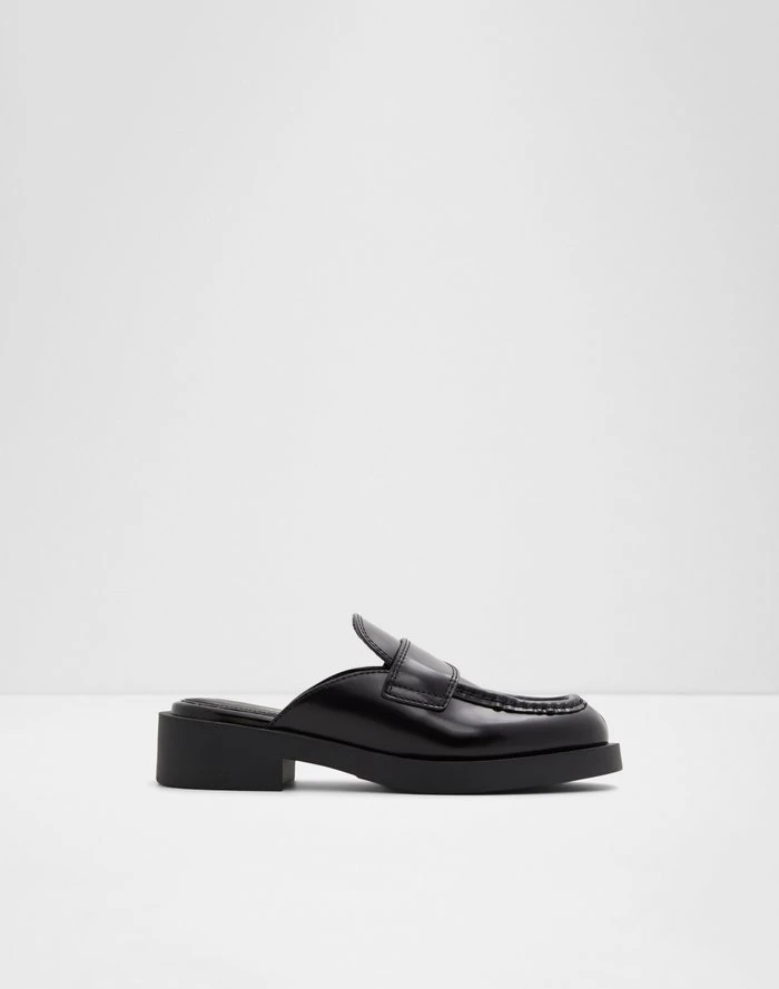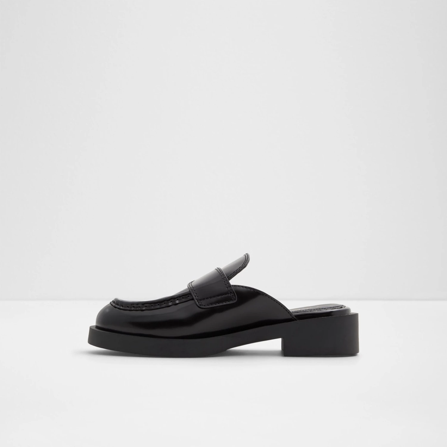 #Style notes *Part loafer, part mule, these easy on, easy off slip-on shoes are an office essential. #Details * Mule * Closed round toe * Lug sole * Slip-on * Keeper ornament * Colour Black #Materials *Upper: Leather *Main: Shiny *Sole: Rubber #Measurements *Heel height: 1.5 cm *Platform height: 0.75 cm