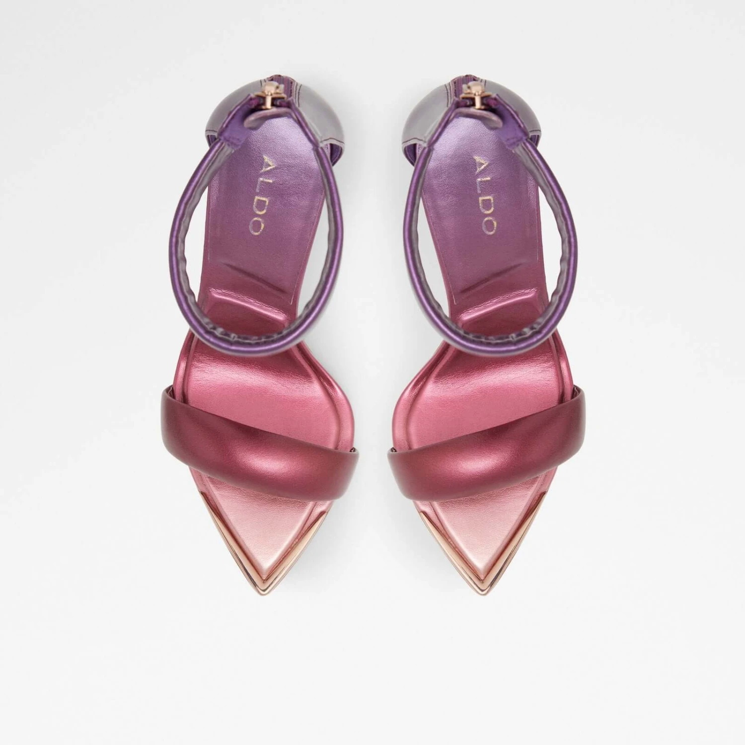 #Style Notes * Hit celeb status with these pointy toe stilettos that feel very fresh. Everyone needs at least one pair of major showstoppers! The thin ankle strap is equal parts delicate and flirty. #Details *Colour: Metallic Multi *Heel Height: 4.00 In (10.16 Cm) *Heel Type: Stiletto #Materials *Main Material: Synthetic *Sole Material: Rubber