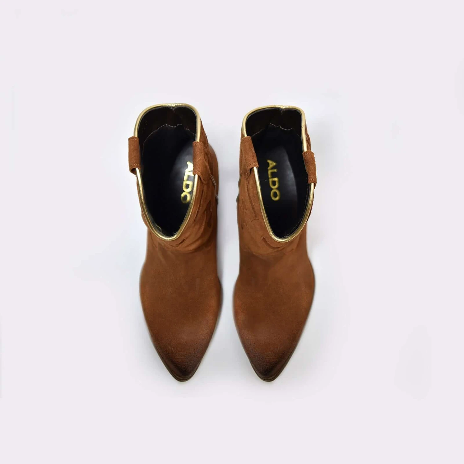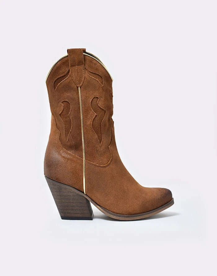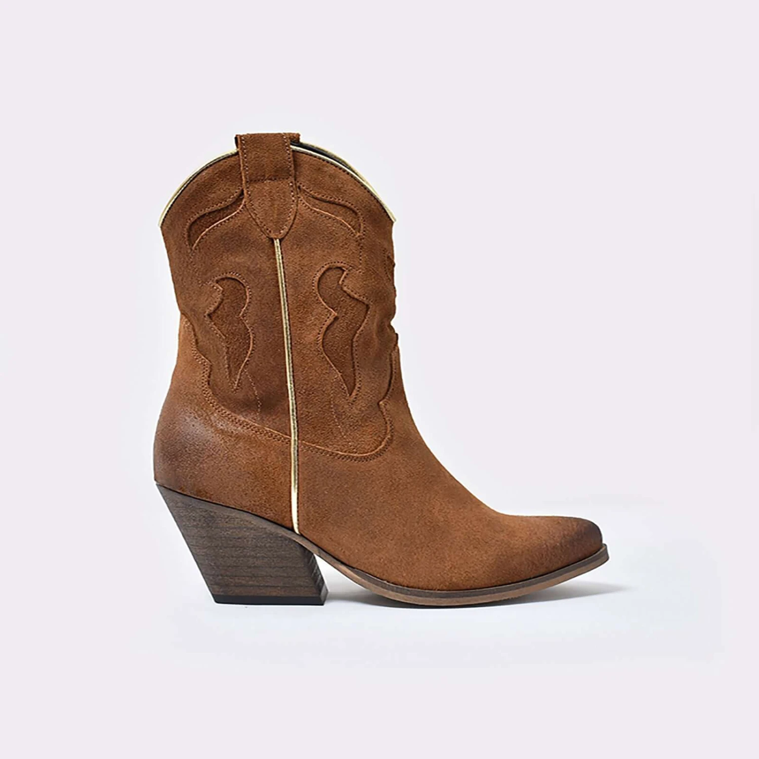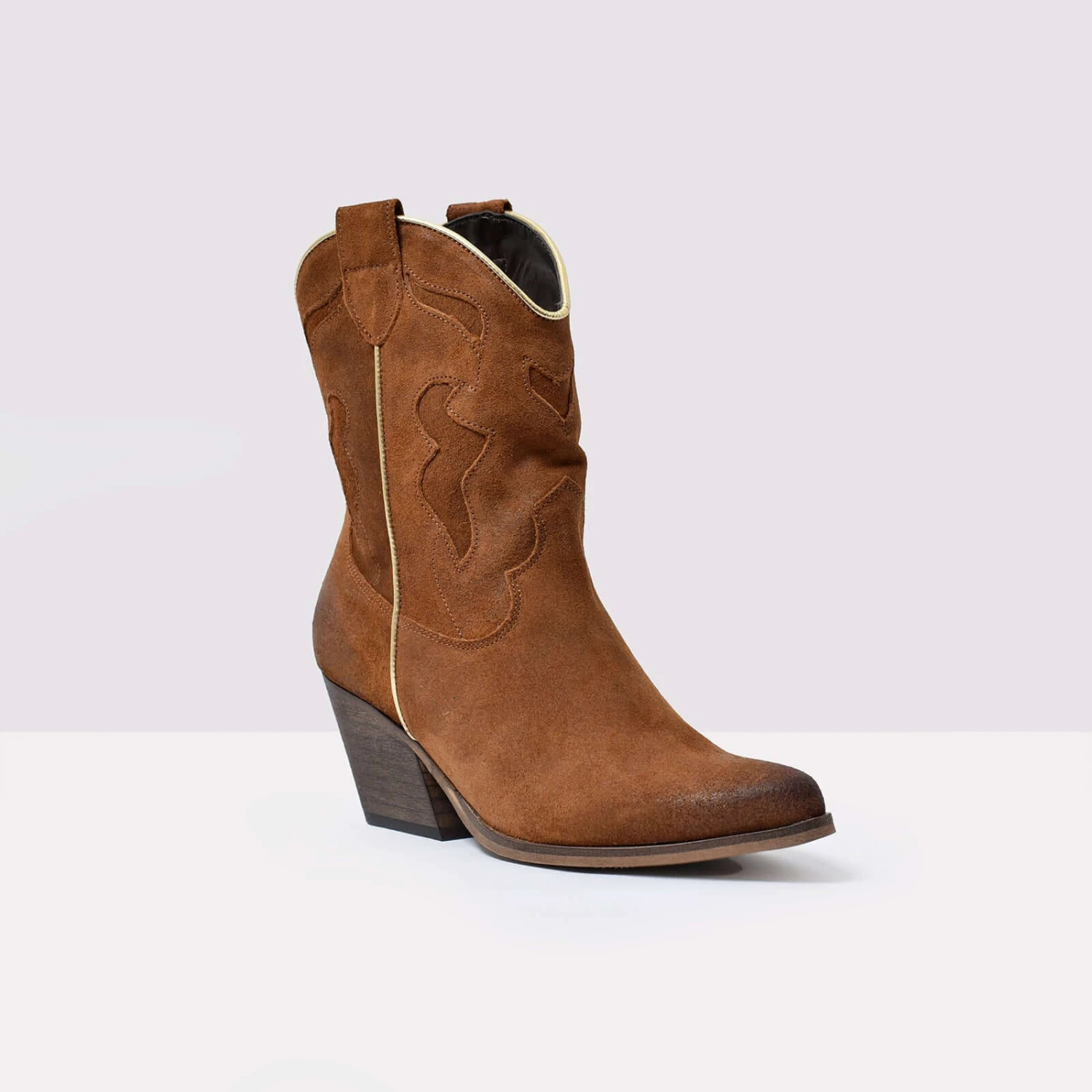 #Style notes *Take your look in a new direction with the unbridled flare of these western-inspired leather ankle boots. With a modern block heel and easy slip-on construction, these casual booties complete your boho-chic looks to peak perfection. #Details * Western ankle boot * Round toe * Block heel * Slip on * Colour Cognac #Materials *Upper: Leather *Sole: Rubber #Measurements *Heel height: 5.0 cm *Shaft Height: 14.5 cm