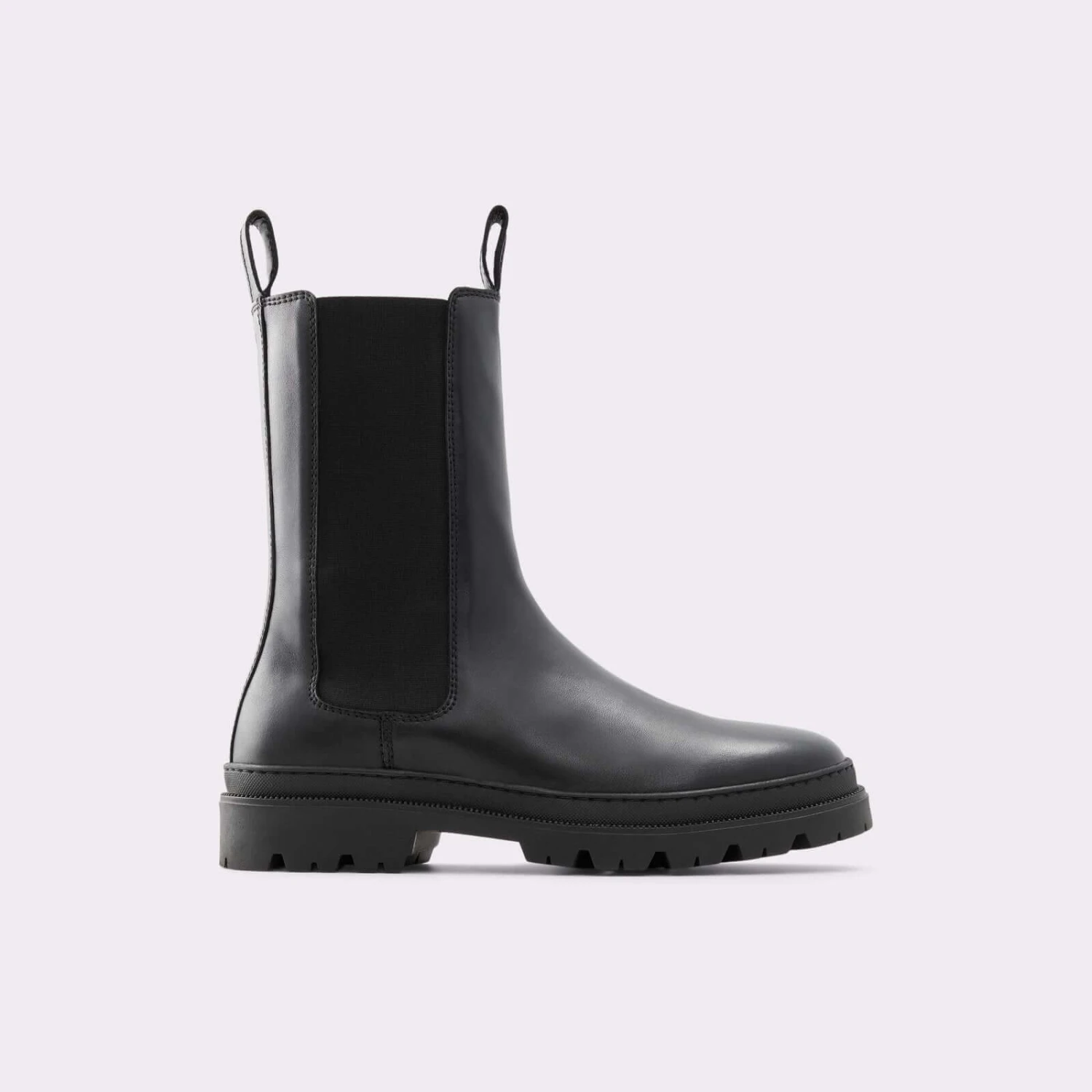 #Style notes *A modern twist on the iconic chelsea silhouette, this mid-calf boot with a statement lug sole is fashion’s new front-runner. #Details * Chelsea boot * Almond toe * Slip on * Colour Black #Materials *Upper: Leather *Main: Smooth *Sole: Rubber #Measurements *Heel height: 1.25 cm *Shaft Height: 10.25 cm