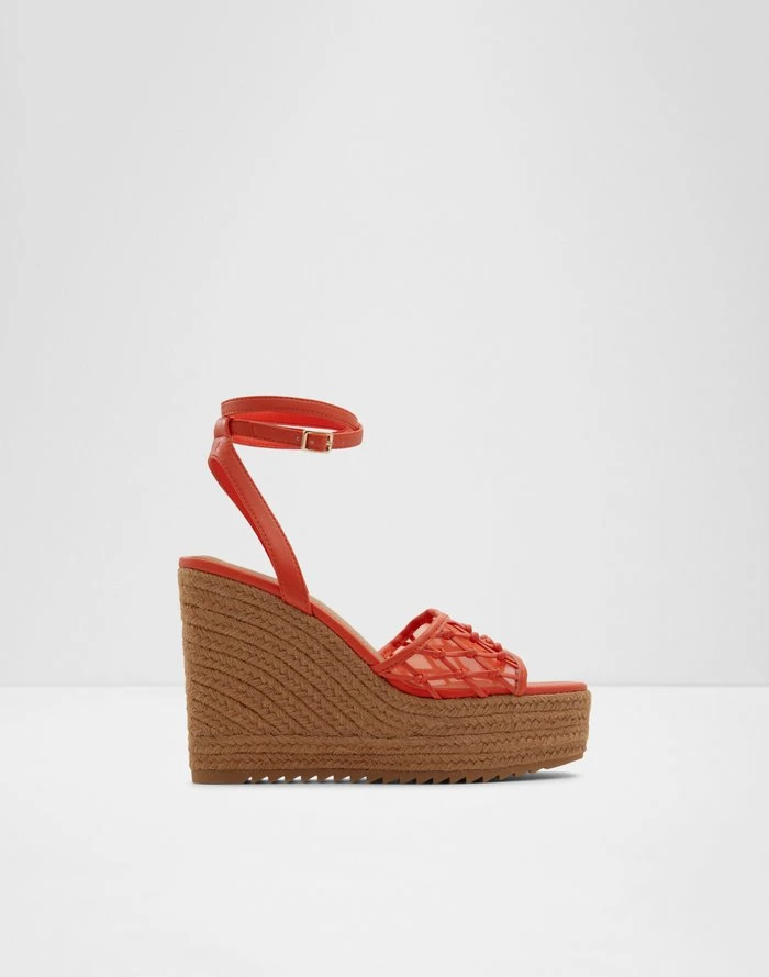 #Style notes * Check out our super-stylish Dellen wedge sandal that brings a sophisticated update to the classic espadrille with a chic, buckle-style ankle strap.#Details * Strappy wedge sandal * Open round toe * Wedge heel * Buckle closure * Colour Bright Orange #Materials *Upper: Synthetic *Main: Mixed materials *Sole: Rubber #Measurements *Heel height: 11.4 cm *Platform height: 4.45 cm