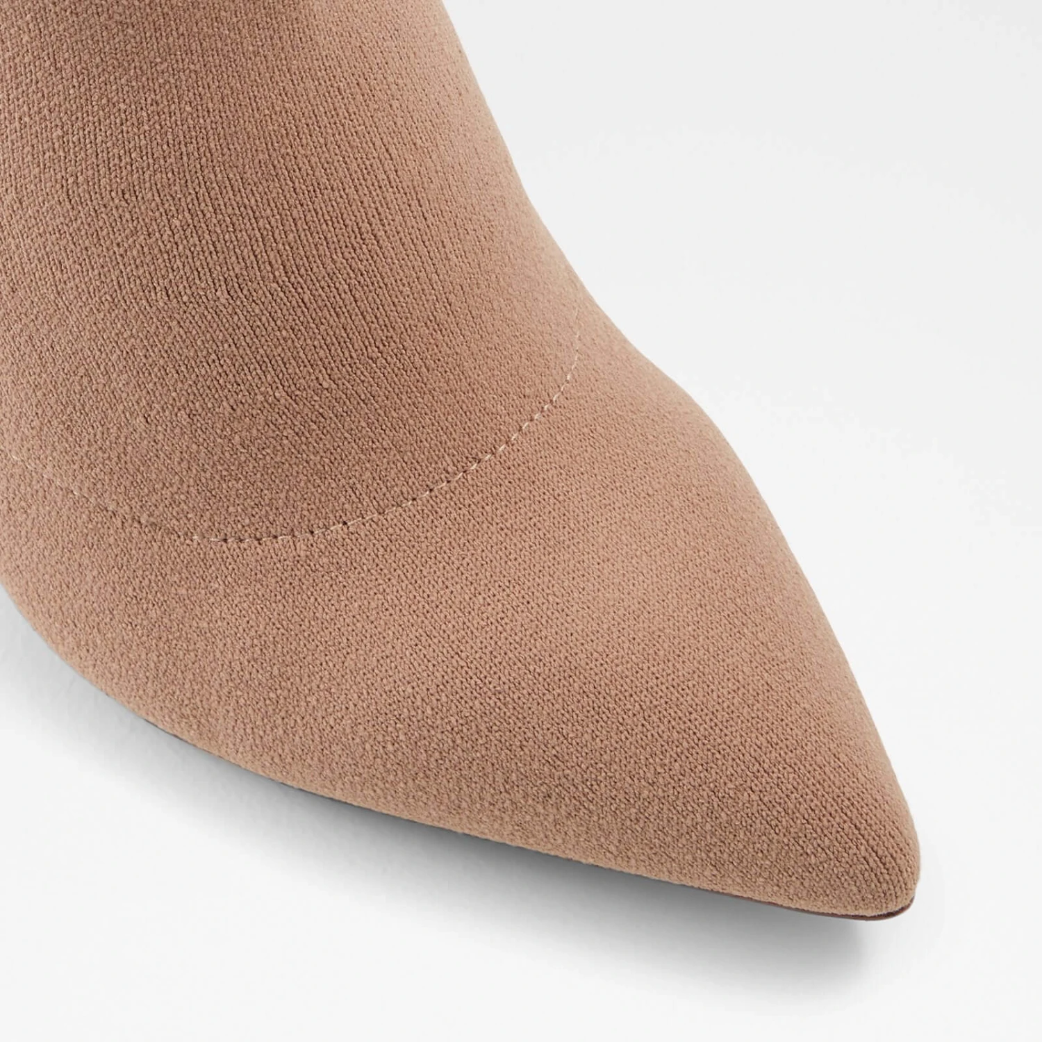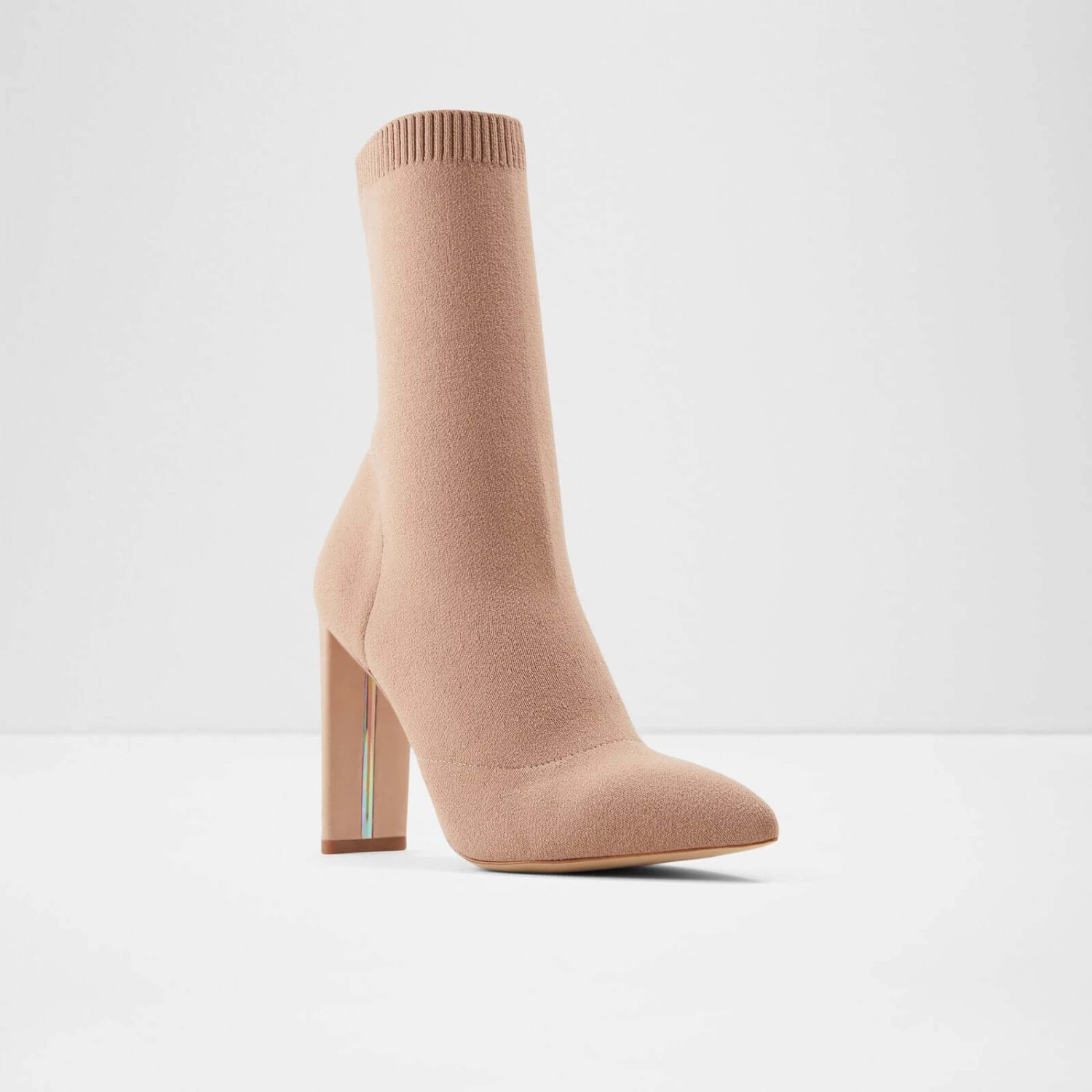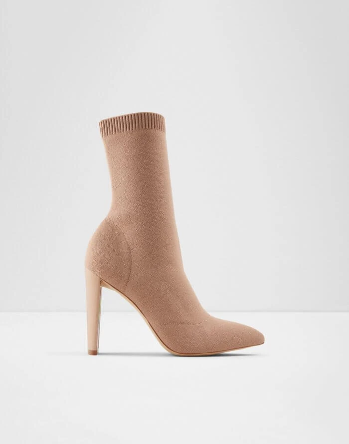 With its pointy toe and stiletto heel, this of-the-moment sock bootie delivers the perfect streamlined fit while also keeping waste out of landfills. Crafted with recycled knit, Deludith is your new favourite bootie with a positive footprint. Each pair is made out of the equivalent of 16 recycled plastic bottles. #Details * Mid-calf boot * Pointy toe * Stiletto heel * Slip on * Colour Bone #Materials *Upper: Recycled Knit *Sole: Rubber #Measurements *Heel height: 10.0 cm *Shaft Height: 18.0 cm