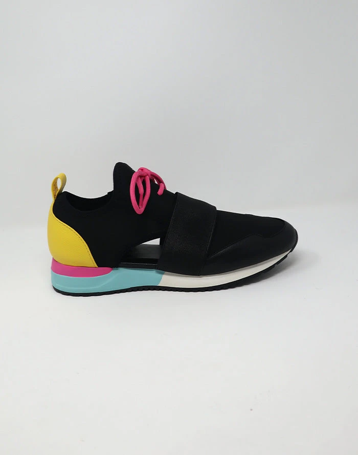 #Style Notes *Cut-out details and clean, bold lines define our Dwiediah sneakers made with sock-like, foot-hugging neoprene. Ultra flexible and ultra chic. #Details *Colour: Other Black *Heel Type: Flat Or No Heel #Materials *Main Material: Textile *Sole Material: Rubber