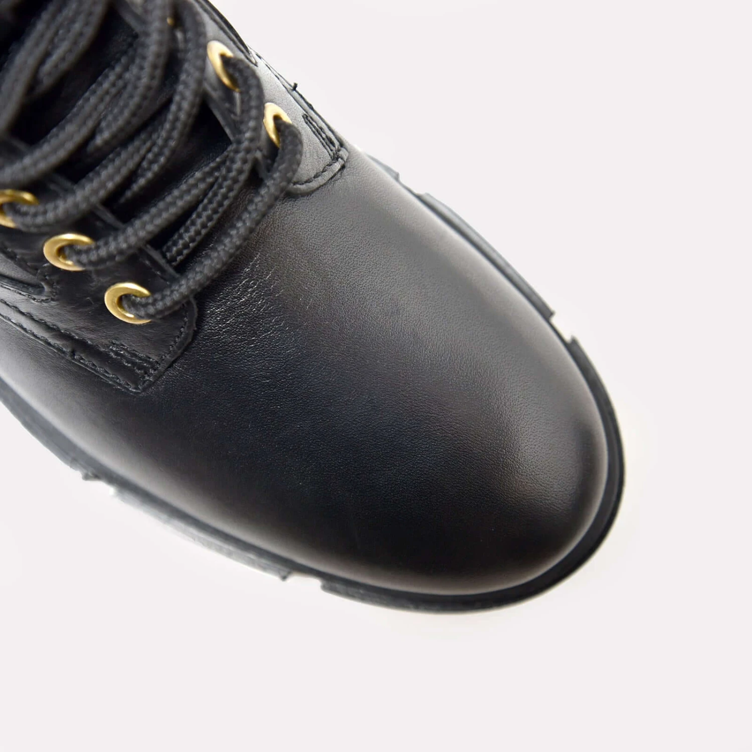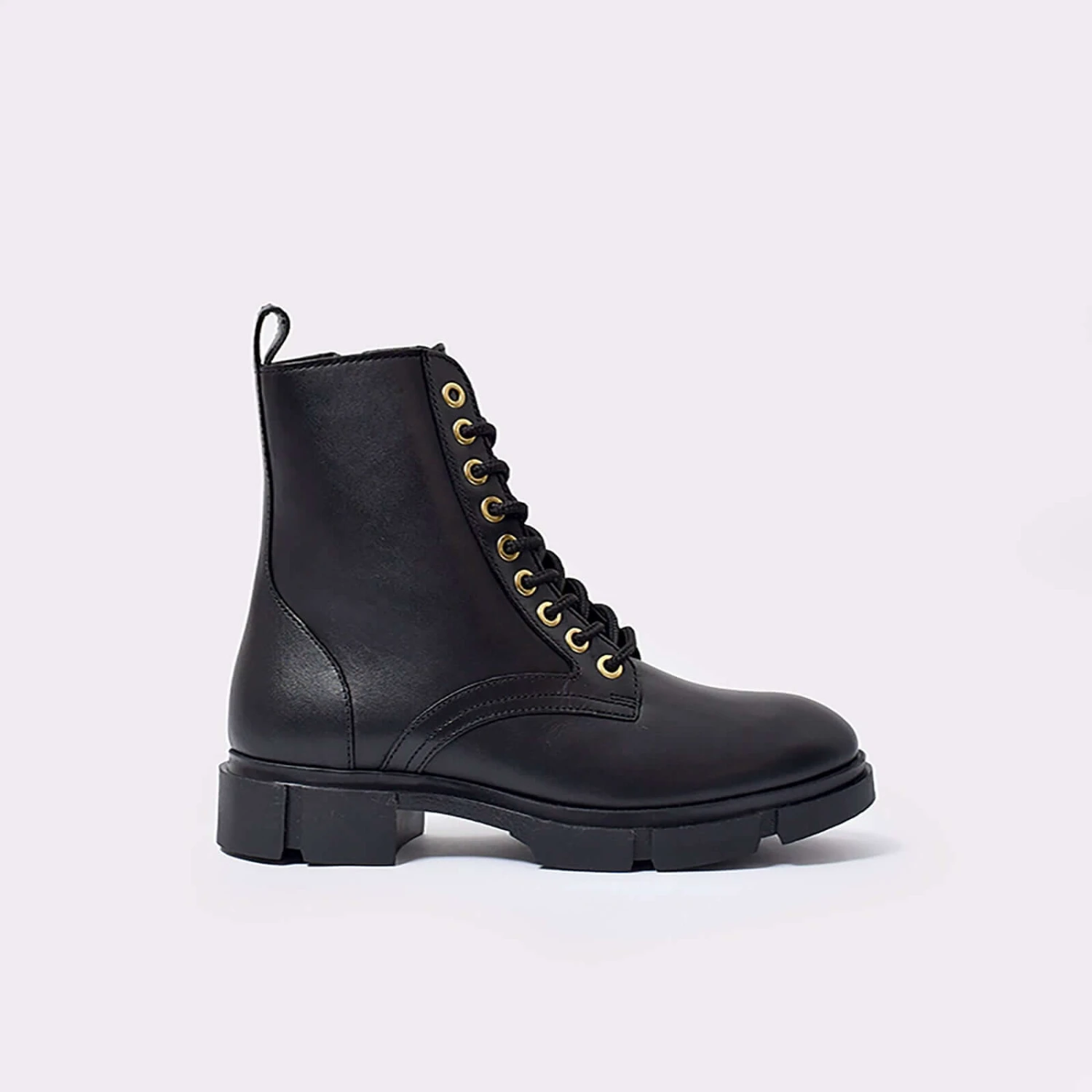 #Style notes * Take your next steps with the biker style Edaori boot. Showcasing lace up detail on the front and a chunky supportive sole. #Details * Colour Black #Measurements *Heel height: 3.0 cm *Shaft Height: 18.0 cm