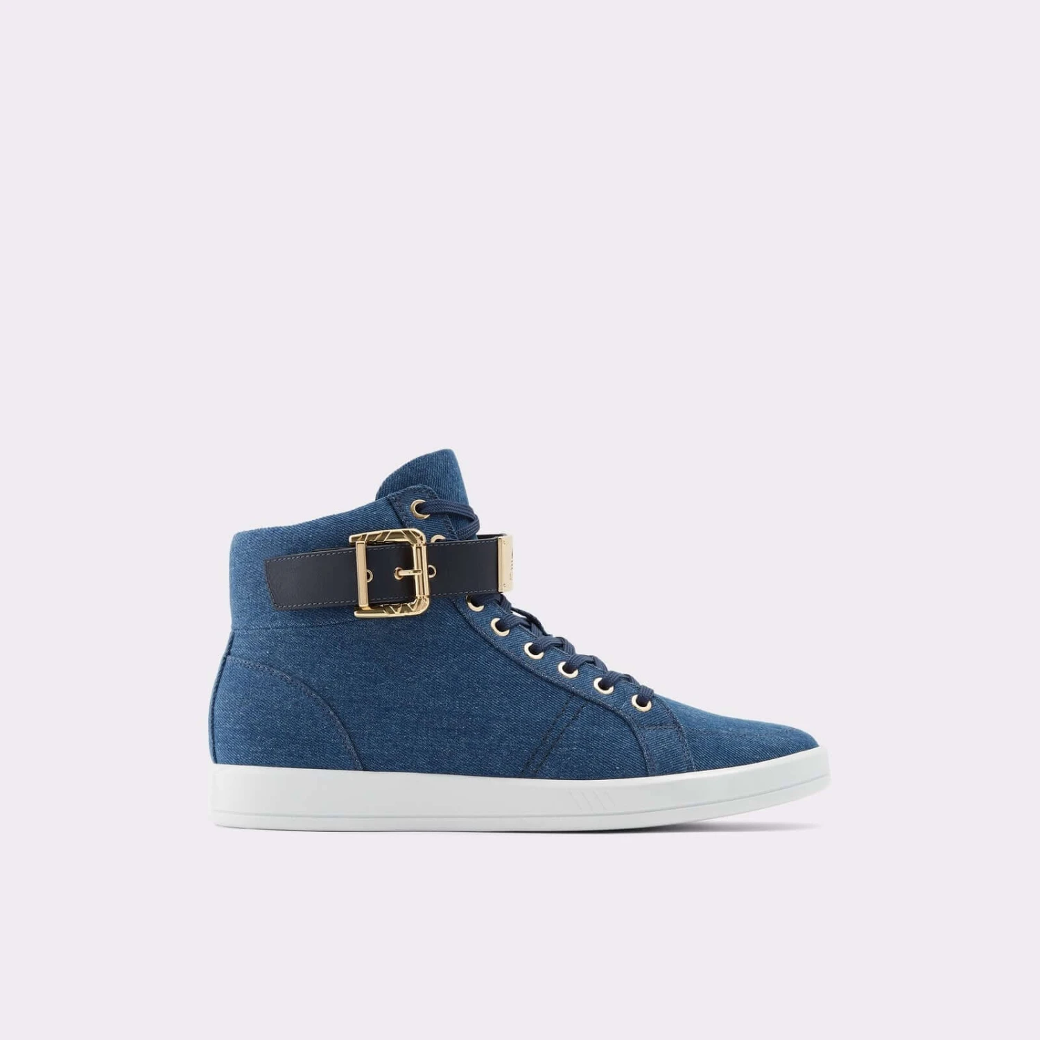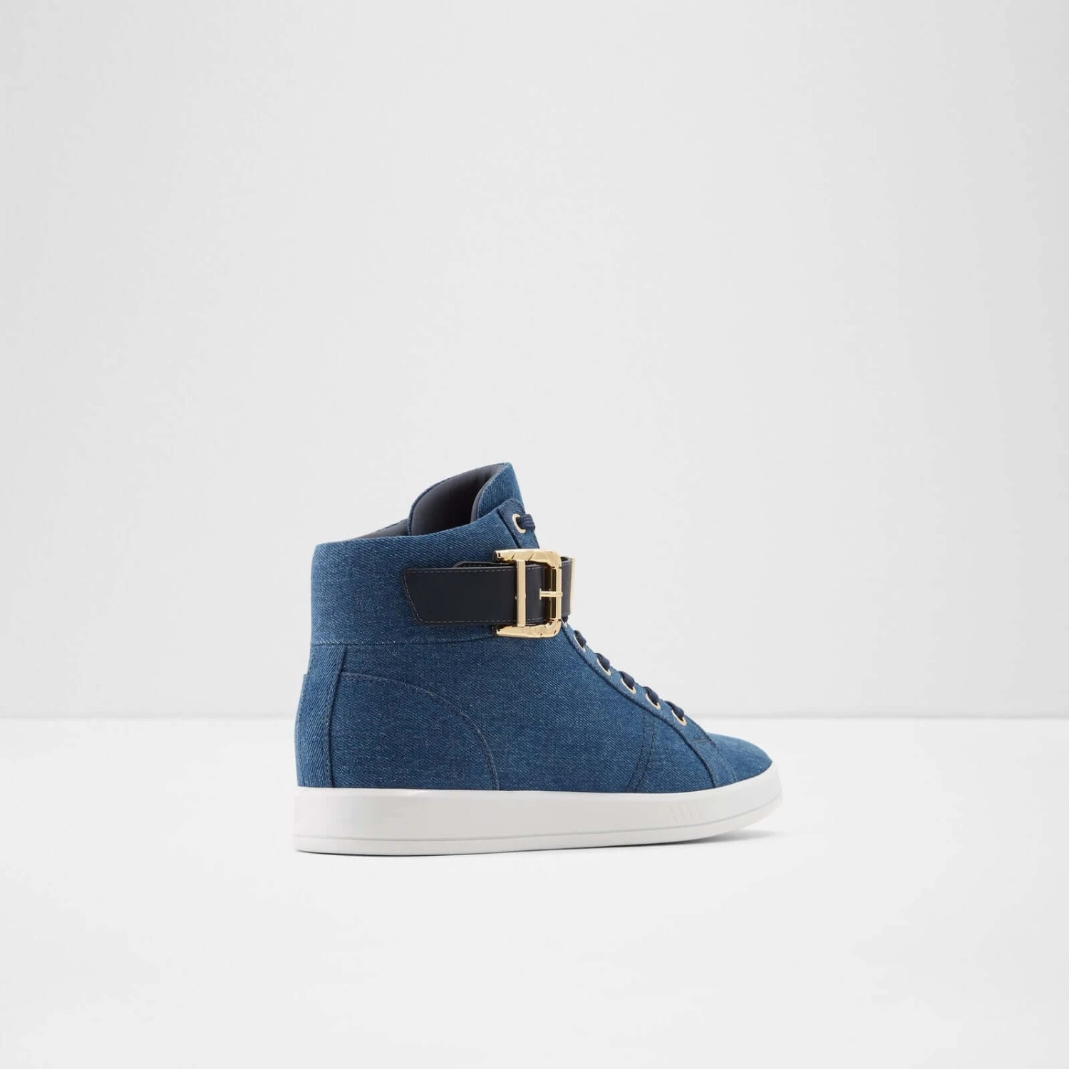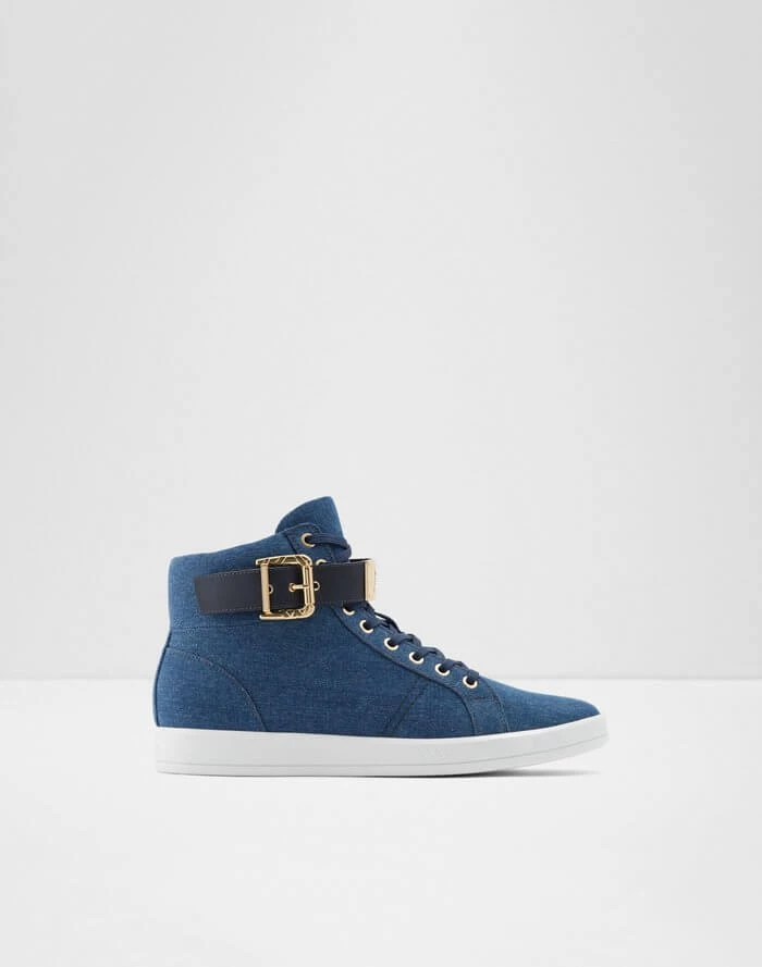 #Style notes *The sartorial sport look crosses all boundaries with this buckled mid-top sneaker. It features a mix of materials in hot hues for a phenomenally street style standout. #Details * High top trainer * Round toe * Laces closure * Colour Medium Blue #Materials *Upper: Textile *Sole: Rubber