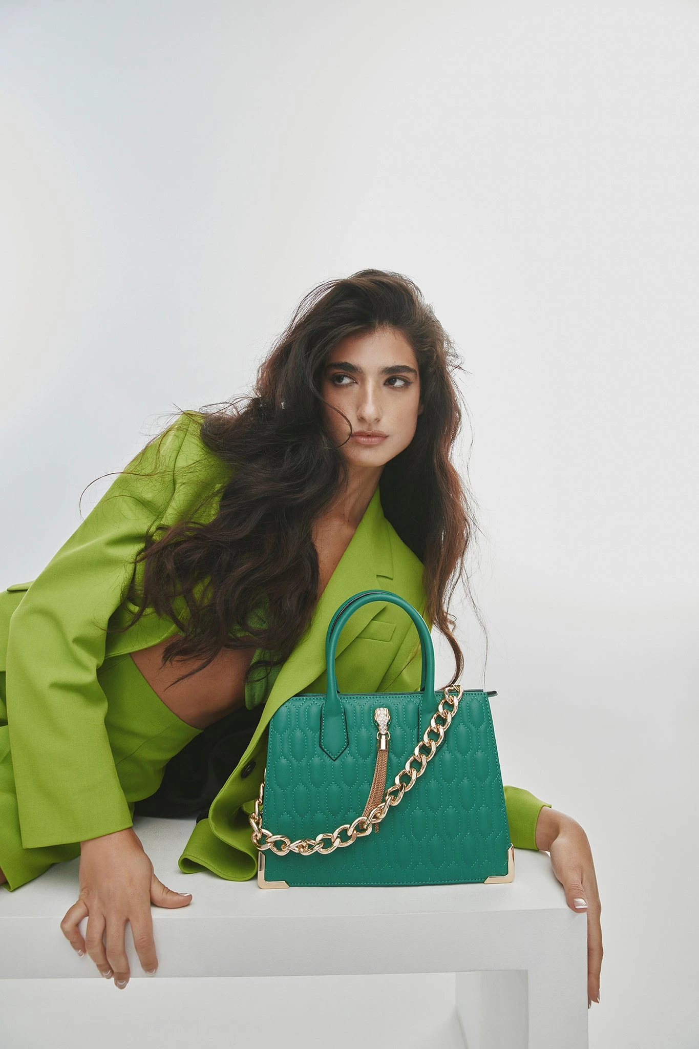 #Style Notes *Ladies ALDO COLLECTION US large tote with non-removable snake head, metal tassel, metal feet and chain detailing. #Details *Tote *Top Zipper *Metal Feet *Removable Adjustable Crossbody Strap *Colour: Green #Materials *Main: Synthetic #Measurements *Handle Drop Length: 4.00 In (10.16 Cm) *Strap Drop Length: 23.00 In (58.42 Cm) *Bag Dimensions: 22 Cm X 30 Cm X 11 Cm
