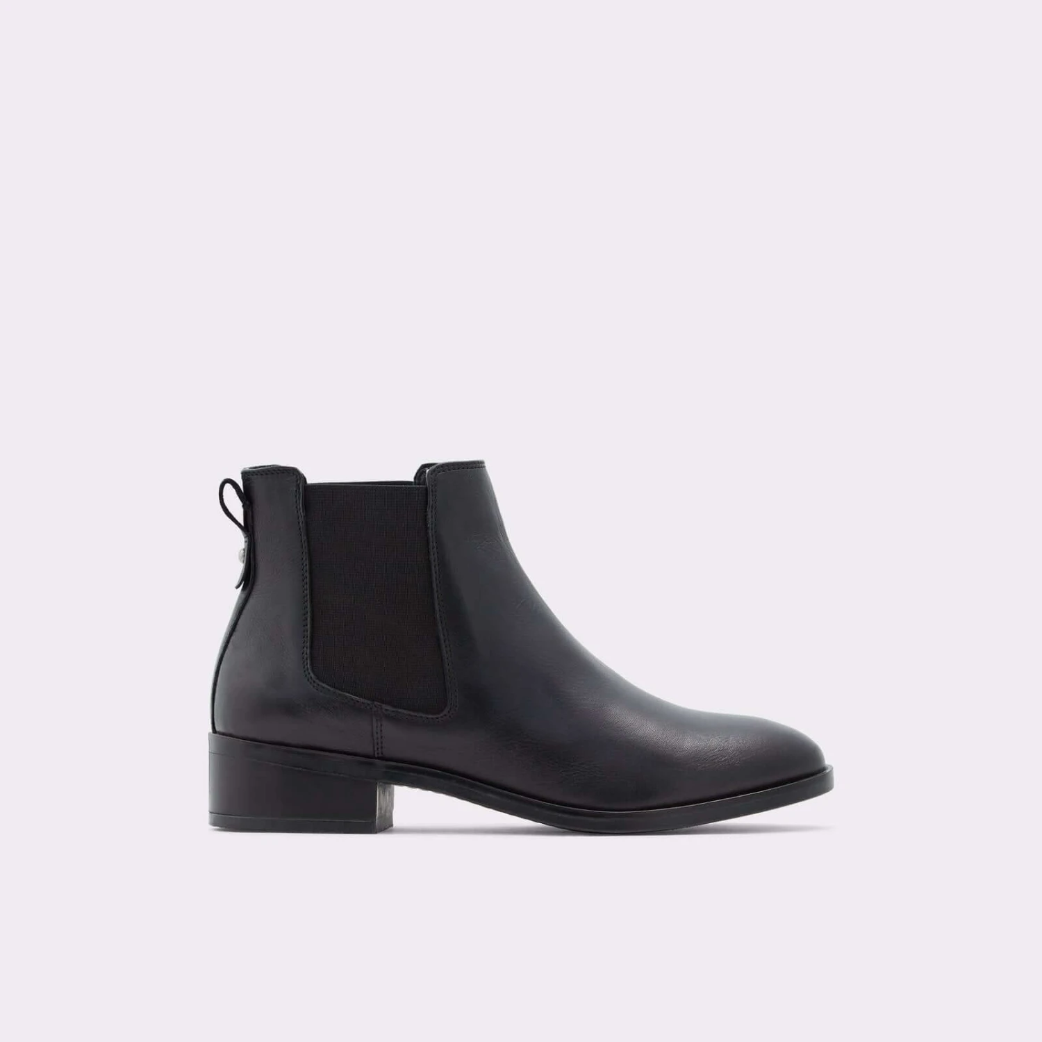 #Style notes *A classic style, the chelsea boot, breaks the status quo for an irreverent finish to feminine looks and pretty frocks. #Details * Ankle boot * Round toe * Block heel * Slip on * Waterproof * Colour Black #Materials *Upper: Leather *Lining: Textile *Sole: Rubber #Measurements *Heel height: 4.0 cm *Shaft Height: 11.5 cm