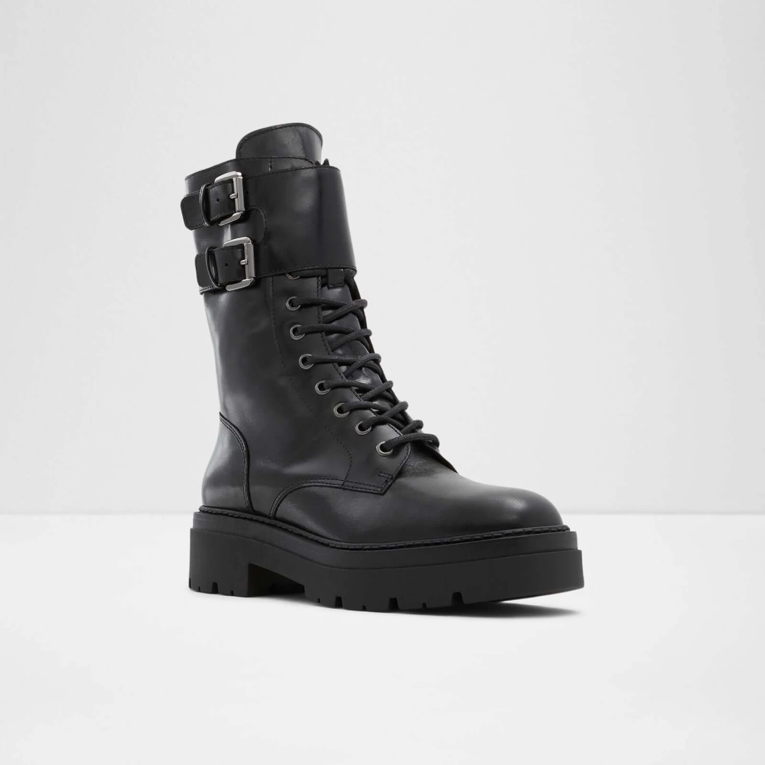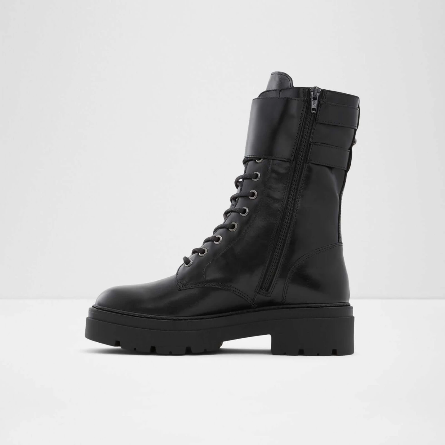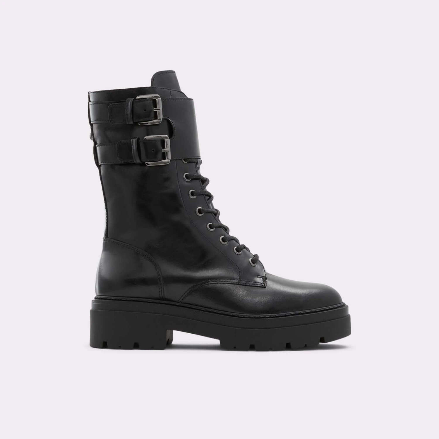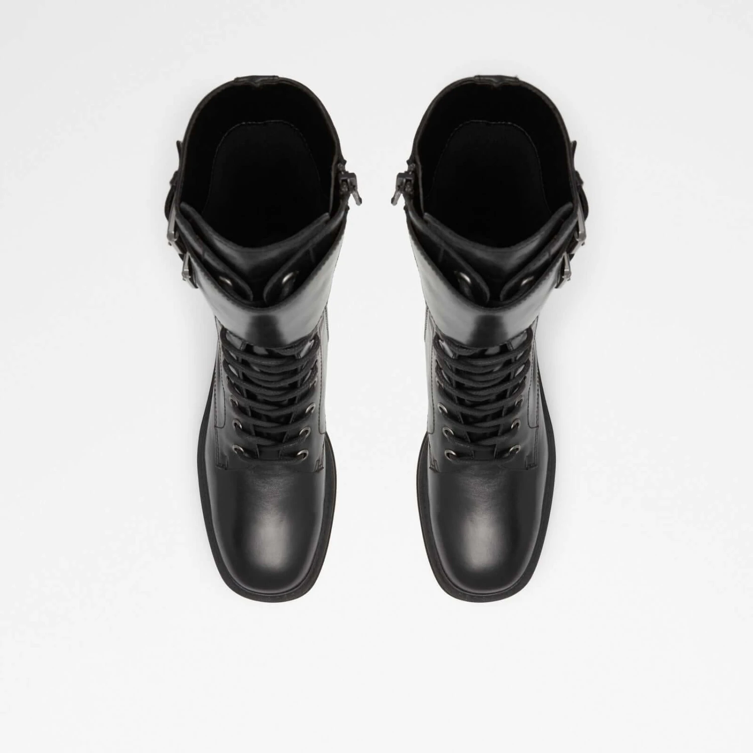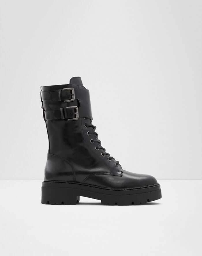 #Style notes * #Details * Motorcycle ankle boot * Square toe * Lug sole * Zipper closure * Buckle closure * Colour Black #Materials *Upper: Leather *Main: Smooth *Sole: Rubber #Measurements *Heel height: 1.75 cm *Shaft Height: 7.75 cm