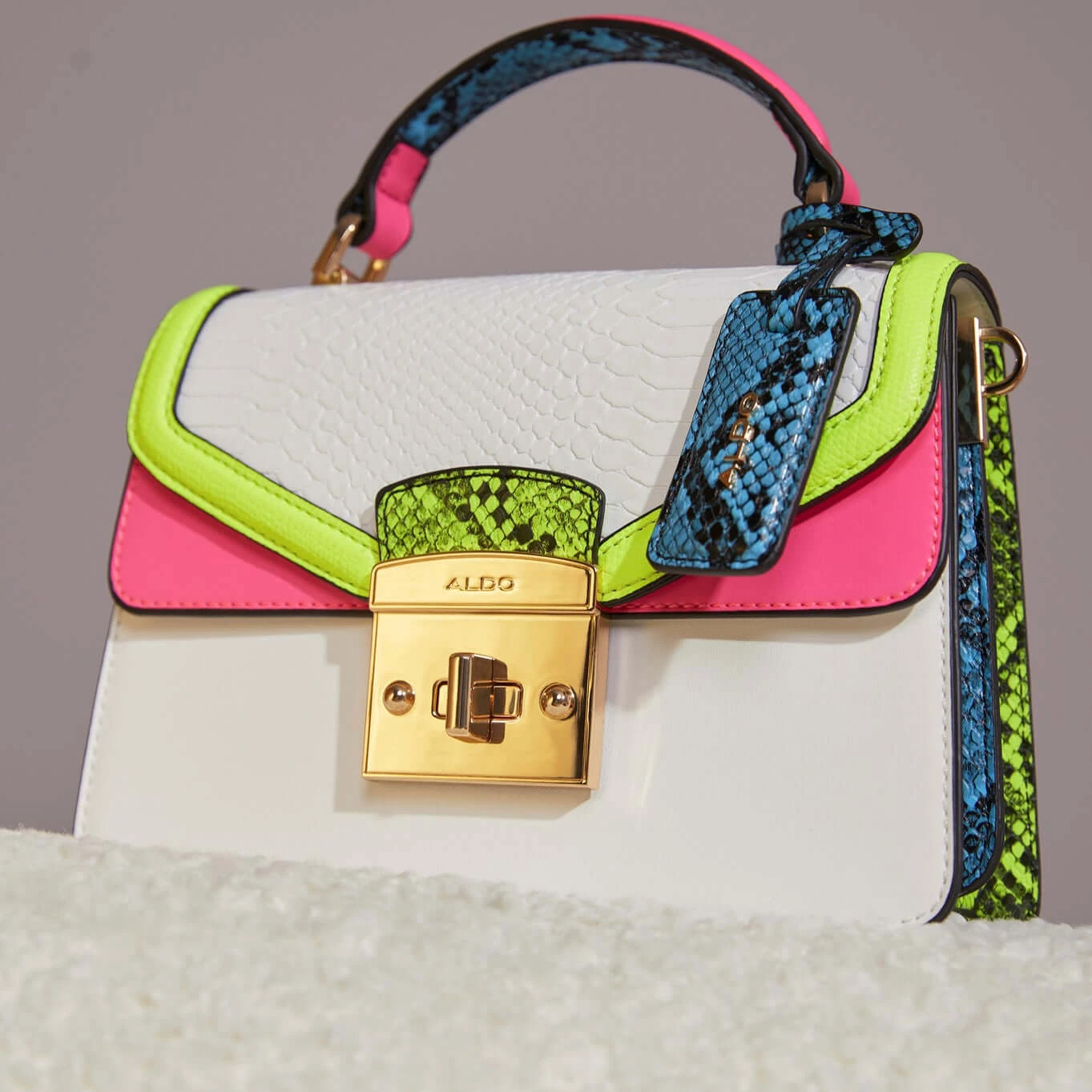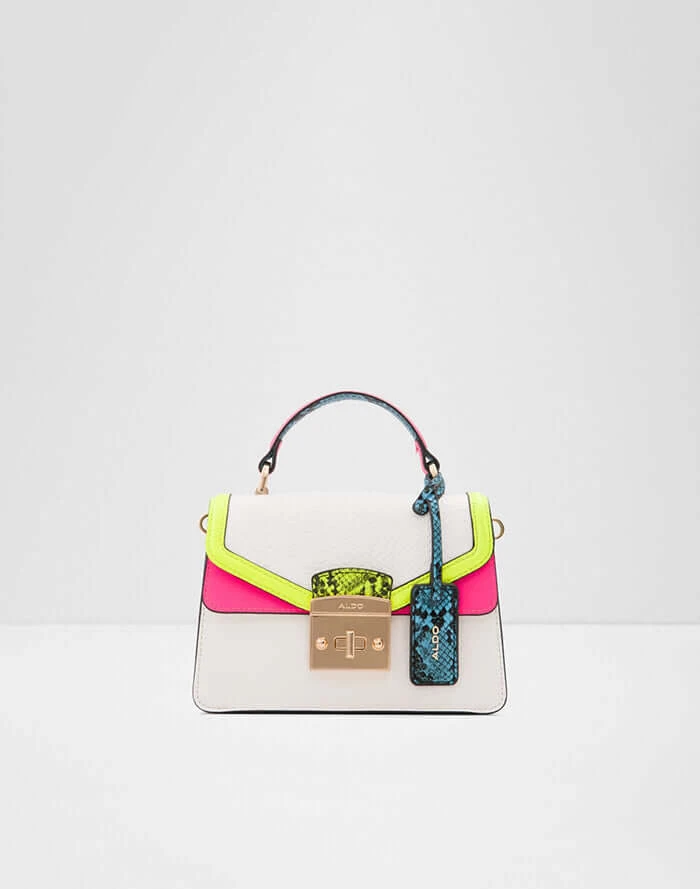 #Style notes * #Details * Handbag * Turn lock closure * Turn lock closure * Interior compartment * Removable adjustable shoulder strap * Colour White #Materials *Main: Synthetic #Measurements *Handle Drop Lenght: 10.0 cm *Strap Drop Length: 53.0 cm