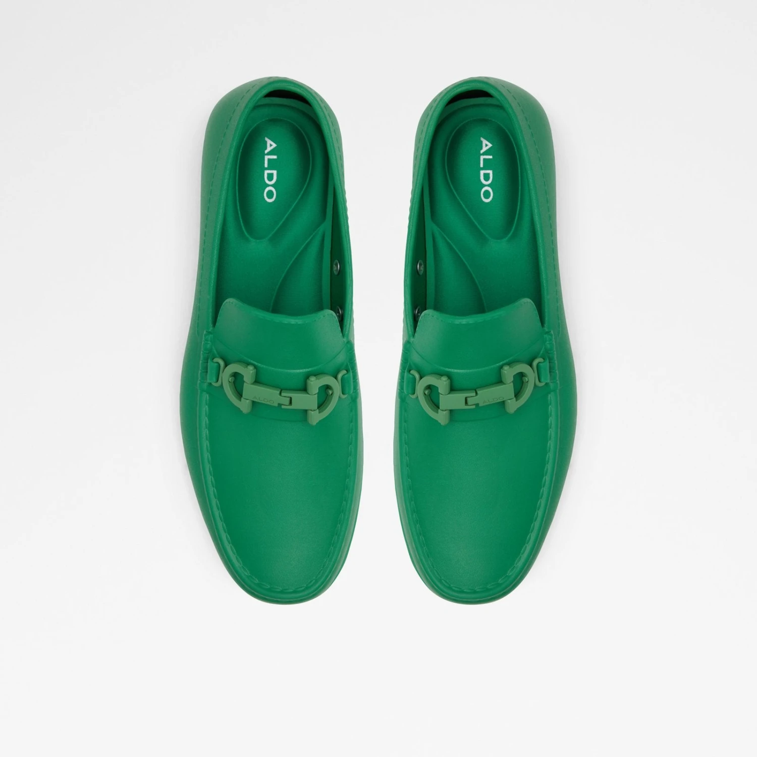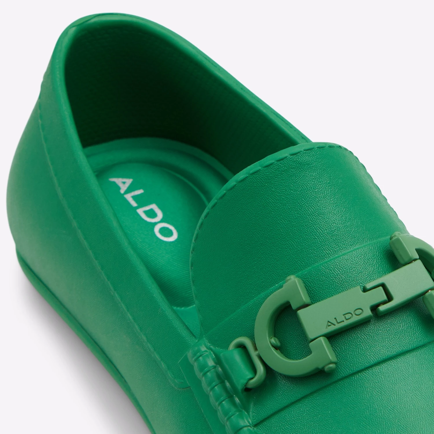 #Style Notes *Timeless drivers with modern appeal and a sleek metal keeper to enhance all your outfits. They add instant charm thanks to the round toe and shiny finish. #Details *Colour: Green *Heel Height: 0.00 In (0.00 Cm) *Heel Type: Flat Or No Heel #Materials *Main Material: Synthetic *Sole Material: Rubber