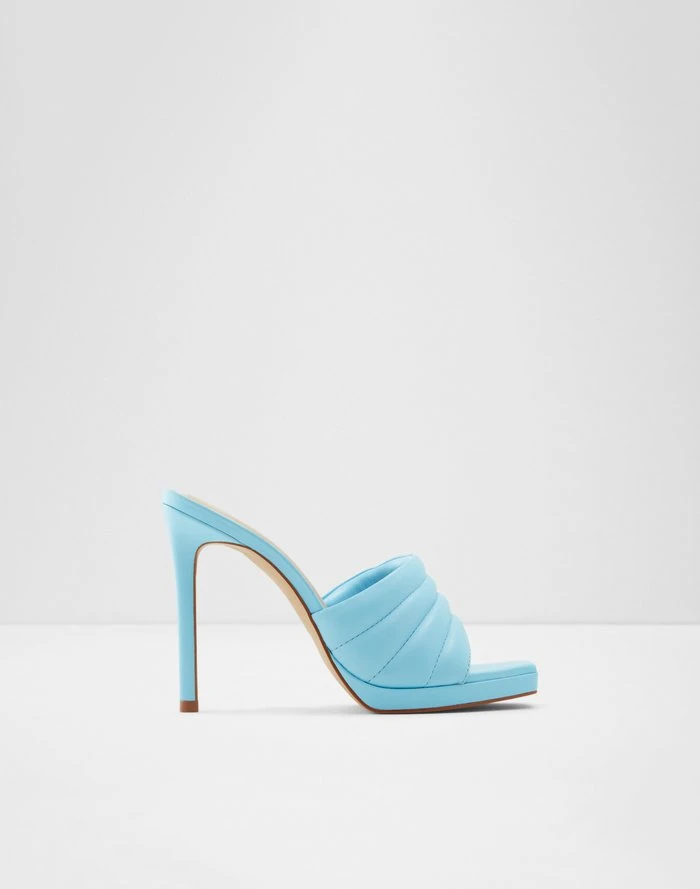 #Style Notes *Serve some serious looks in these square toe slip on platforms with puffy quilted detail. A fan fave of fashion seekers everywhere. Trust us, these will be one of the hottest styles of the season thanks to the effortless chic simplicity. #Details *Colour: Bright Blue *Heel Height: 4.25 In (10.80 Cm) *Heel Type: Stiletto #Materials *Main Material: Leather *Sole Material: Rubber