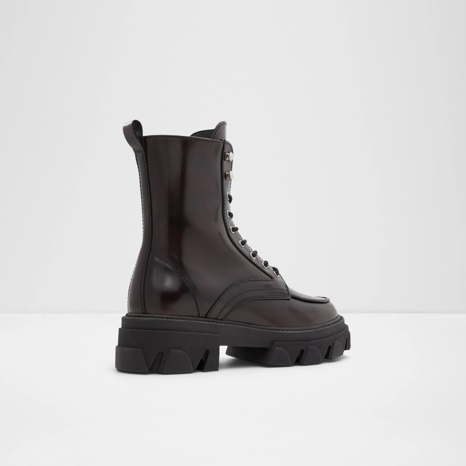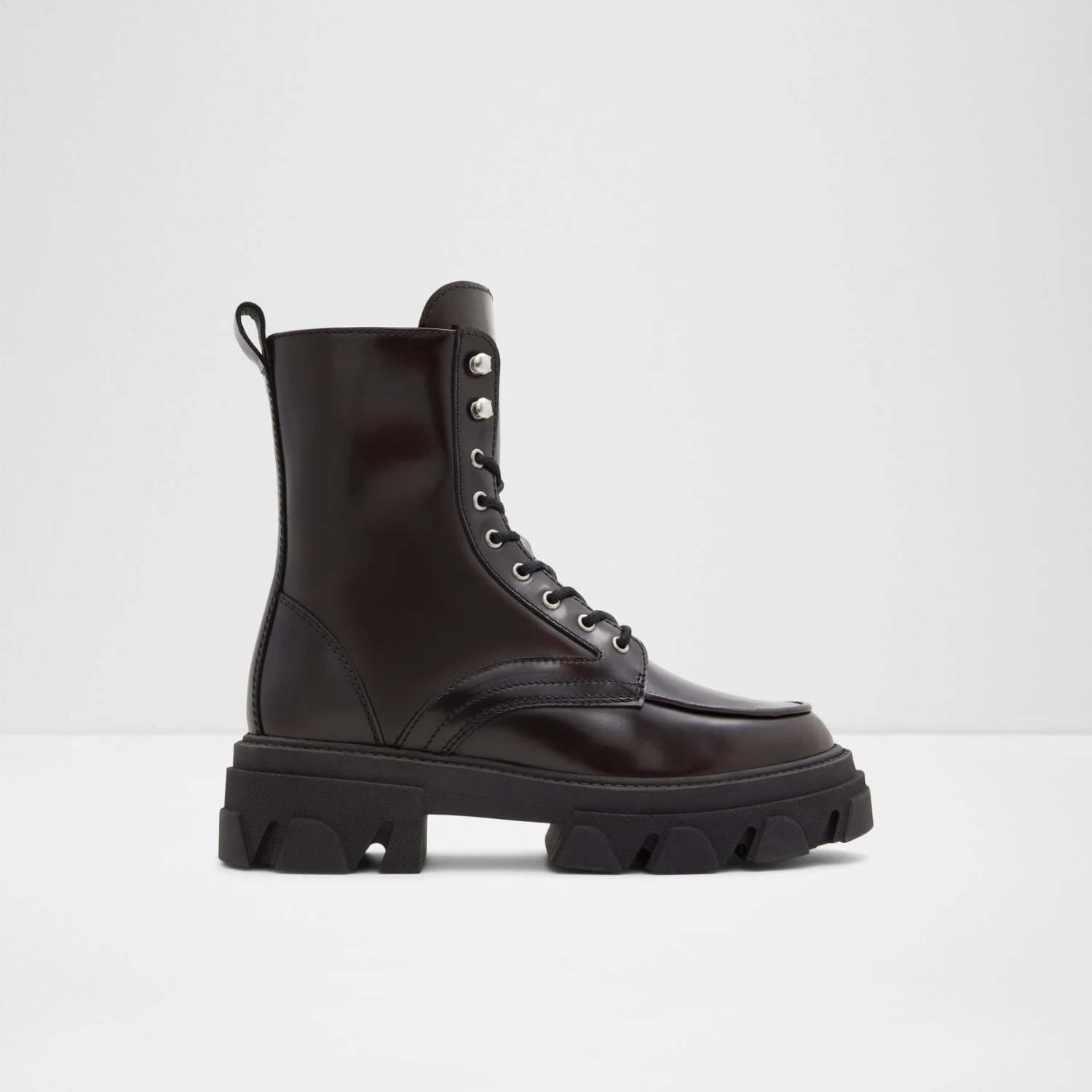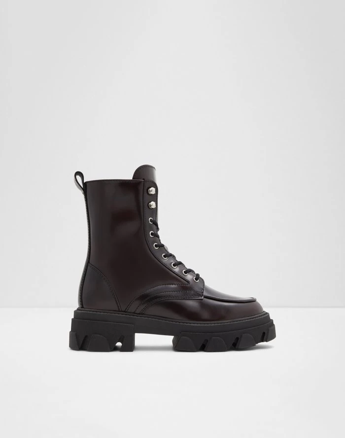 #Style notes *From chunky treaded soles to shiny finish, these glam combat boots will add major character to all your looks. #Details * Lace-up boot * Closed round toe * Lug sole * Zipper closure * Buckle closure * Colour Bordo #Materials *Upper: Leather *Main: Shiny *Sole: Rubber #Measurements *Heel height: 2.0 cm *Shaft Height: 7.0 cm