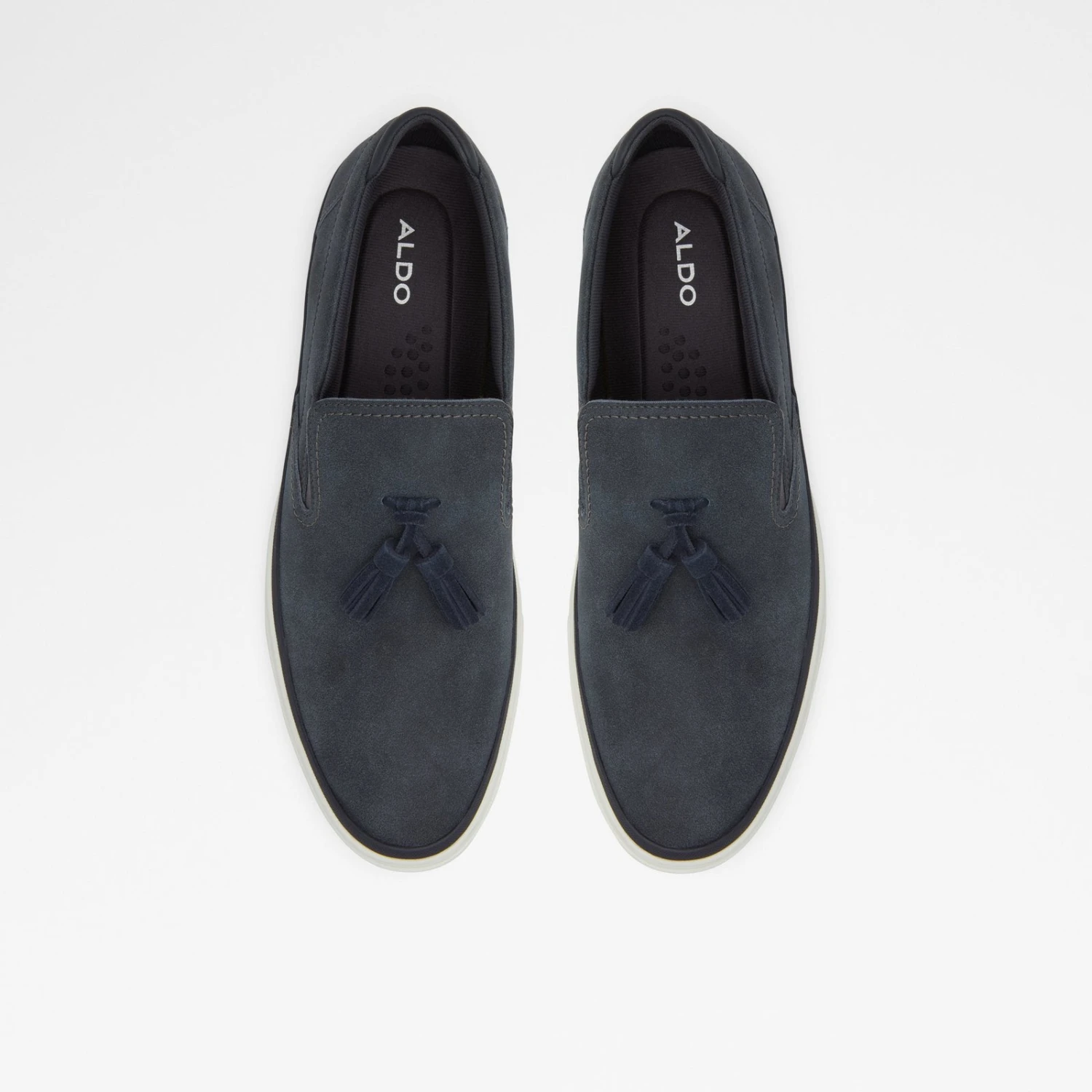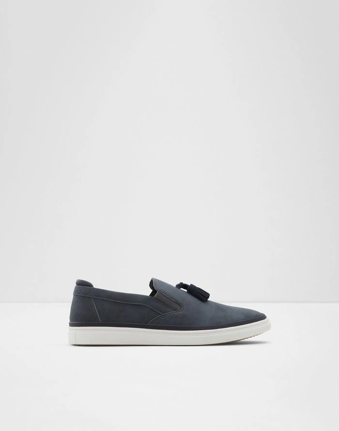 #Style Notes *These versatile nubuck slip ons are equal parts timeless and cool. Tassels add a polished element to any casual ensemble. #Details *Colour: Navy *Heel Type: Flat Or No Heel #Materials *Main Material: Synthetic *Sole Material: Rubber