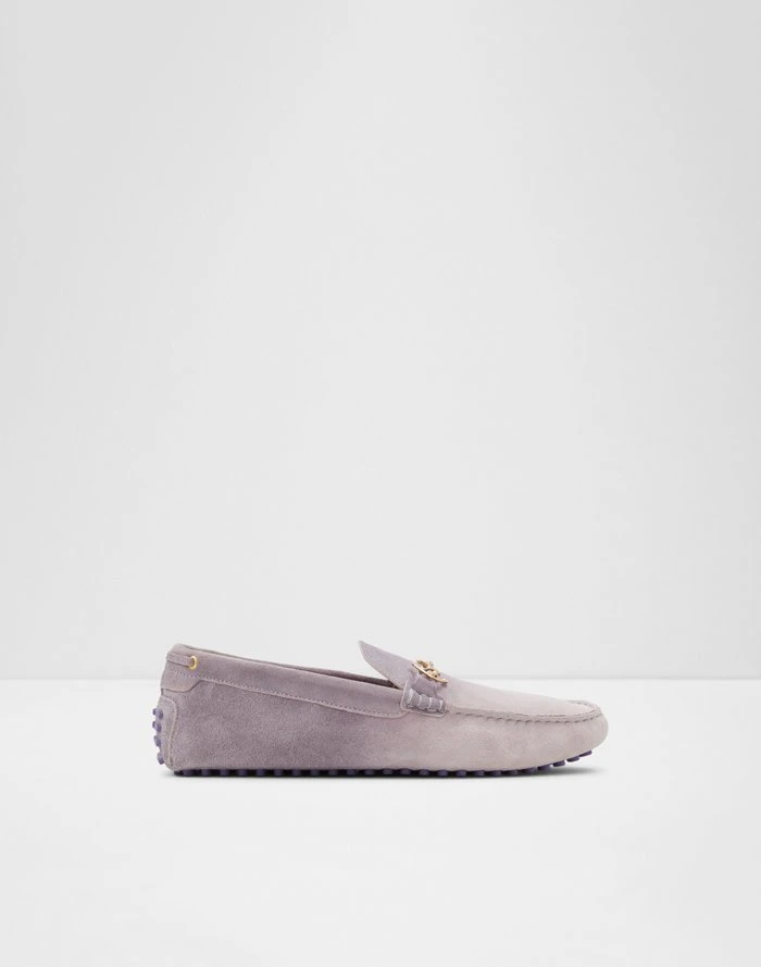 #Style Notes *Up your style game with these classic driving shoes made for all-day wear. Hone your sporty chic style in these casual leather drivers feautring a square toe that elevates and adds a touch of class to every outfit. #Details *Colour: Light Purple *Heel Height: 0.00 In (0.00 Cm) *Heel Type: Flat Or No Heel #Materials *Main Material: Leather *Sole Material: Rubber