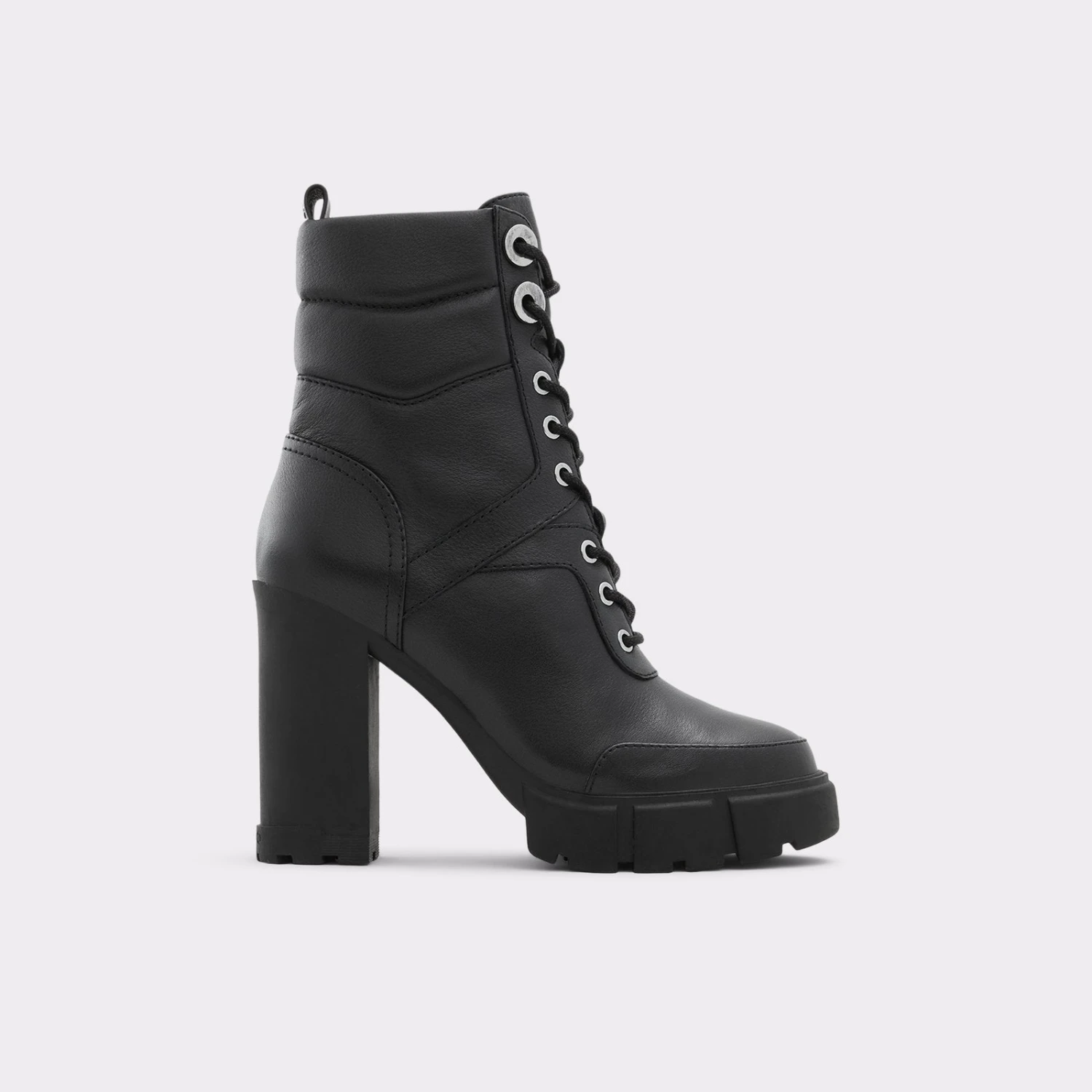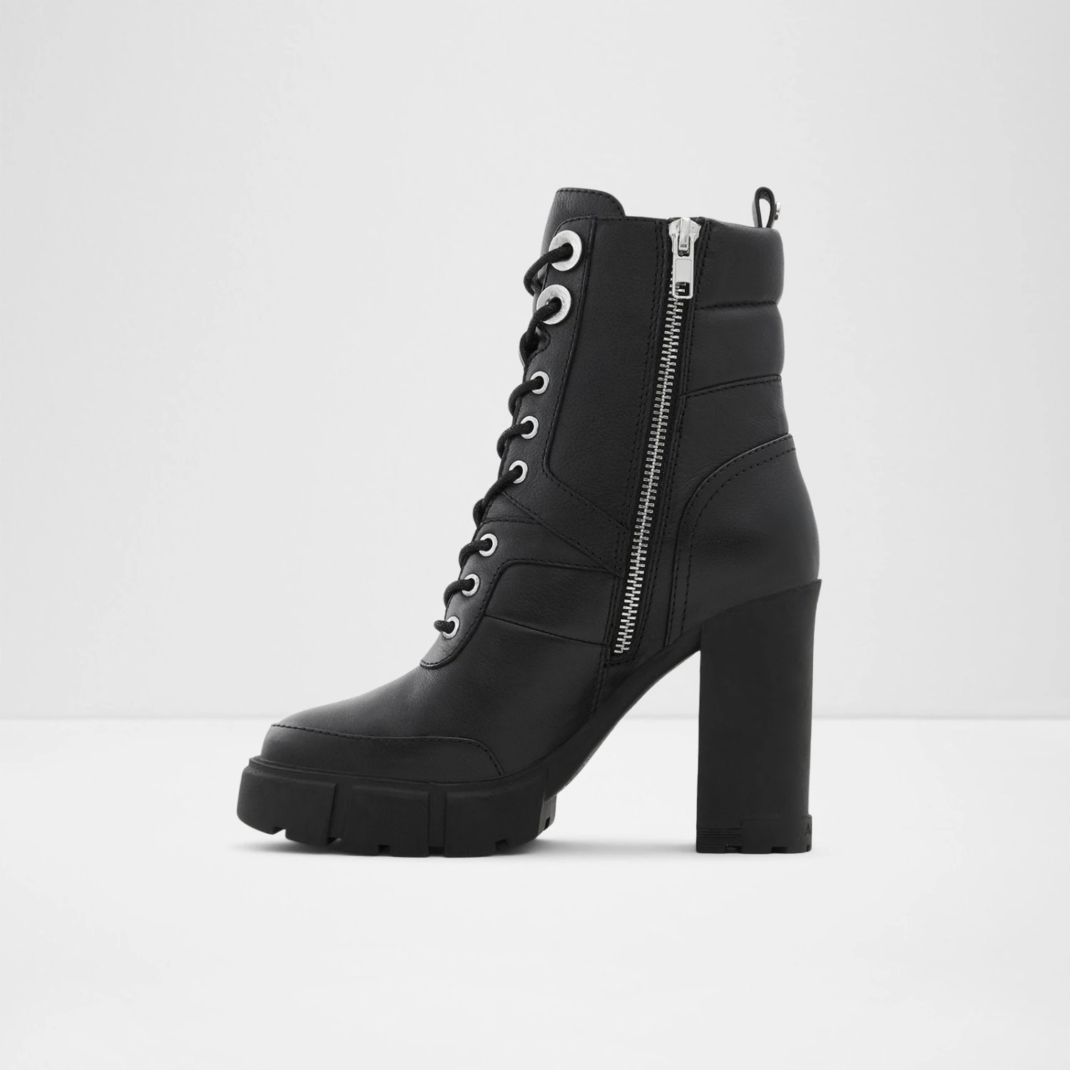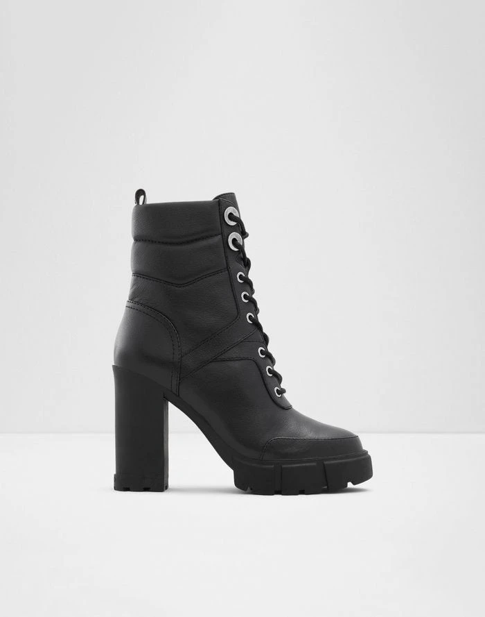 #Style notes * The simple ankle boot gets a hint of attitude with our combat-style Gyrn zip-ups. Leather uppers with bold styling and classic details give this look a little edge. #Details * Combat ankle boot * Round toe * Block heel * Zipper closure * Quilted detail * Colour Black #Materials *Upper: Leather *Main: Smooth *Sole: Rubber #Measurements *Heel height: 4.0 inches *Platform height: 1.0 inches *Shaft Height: 5.25 inches