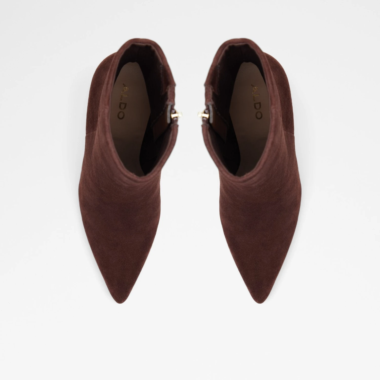 #Style notes *Distinguished by a sleek pointy toe and architectural heel, these suede booties were made to stand out. #Details * Ankle boot * Closed pointy toe * Zipper closure * Colour Medium Brown #Materials *Upper: Leather *Main: Suede *Sole: Rubber #Measurements *Heel height: 4.0 inches *Shaft Height: 5.25 cm