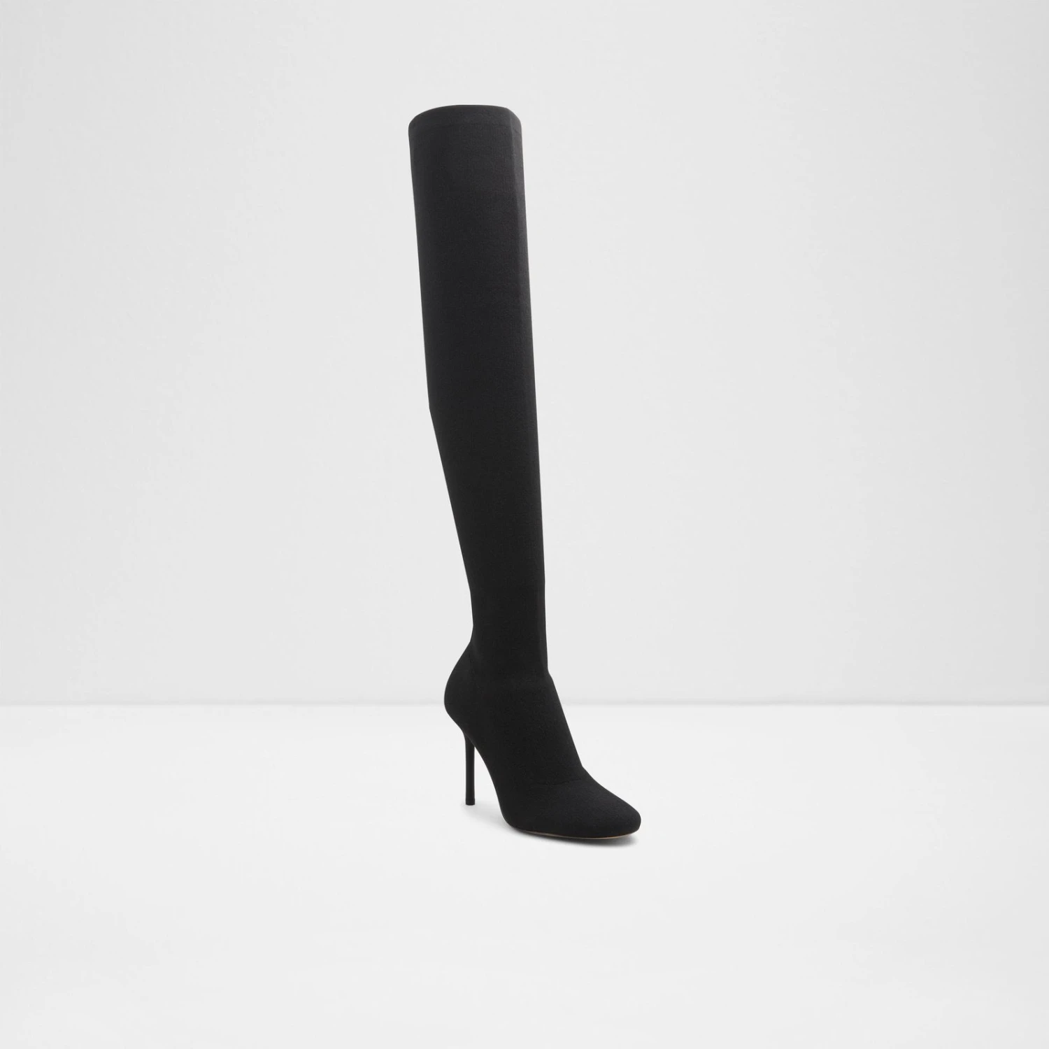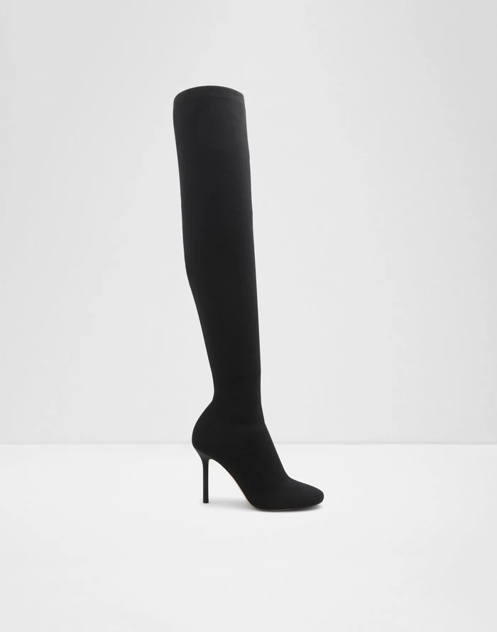 #Style notes *These knit over-the-knee boots with a striking stiletto heel are all you need to make them look twice. #Details * Over-the-knee boot * Closed round toe * Stiletto heel * Slip-on * Colour Black #Materials *Upper: Textile *Main: Knit *Sole: Rubber #Measurements *Heel height: 3.5 cm *Shaft Height: 21.25 cm *Circumference: 15.75 cm