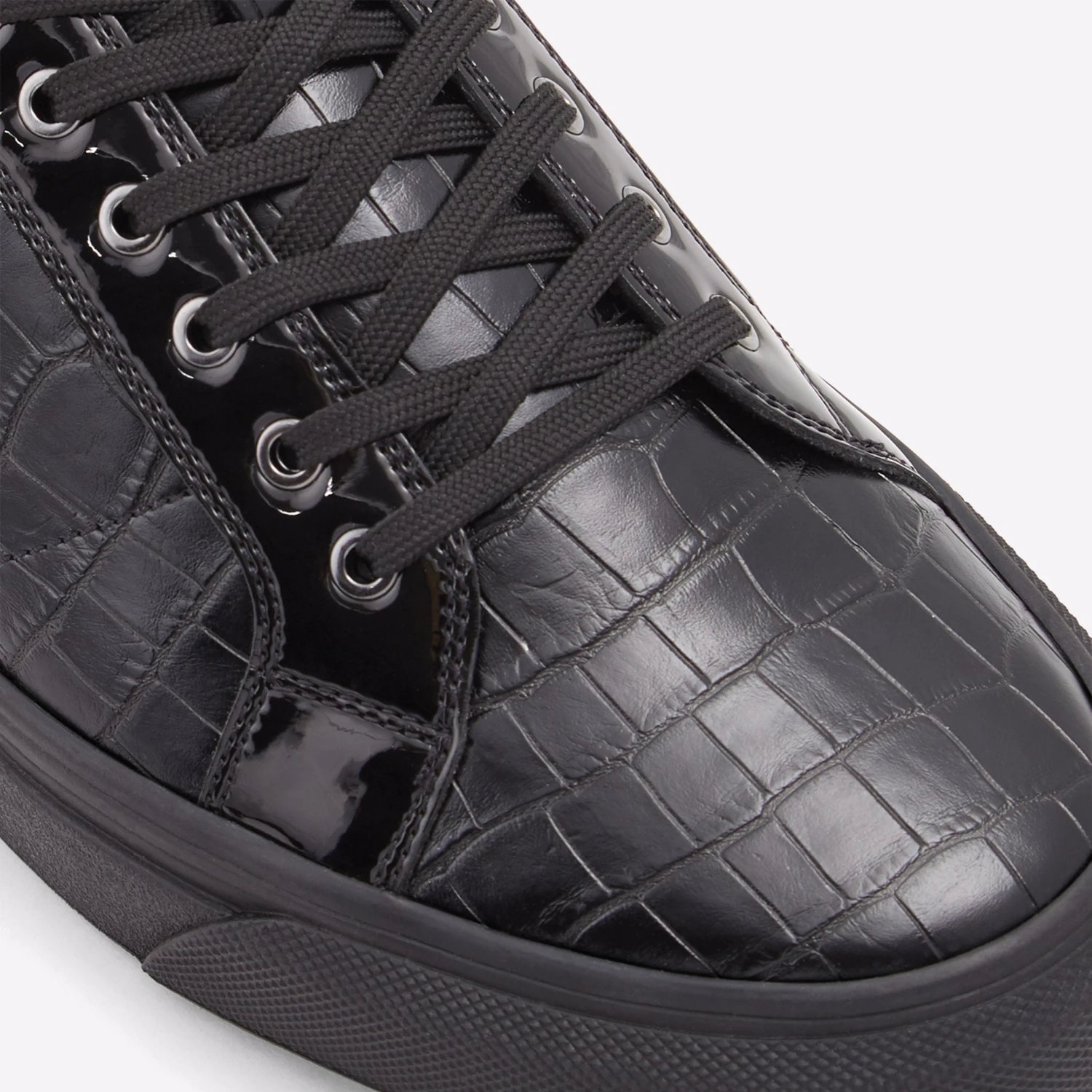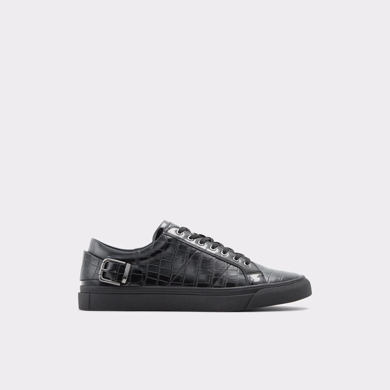 #Style notes *Up your street style with these sleek crocodile shoes designed to make a statement. With a slick monochromatic look, a sturdy cup sole and an accent buckle ornament, these low top sneakers are taking casual shoes to the next level. #Details * Low top sneaker * Round toe * Laces closure * Buckle closure * Colour Black #Materials *Upper: Synthetic *Main: Crocodile Skin *Sole: Rubber