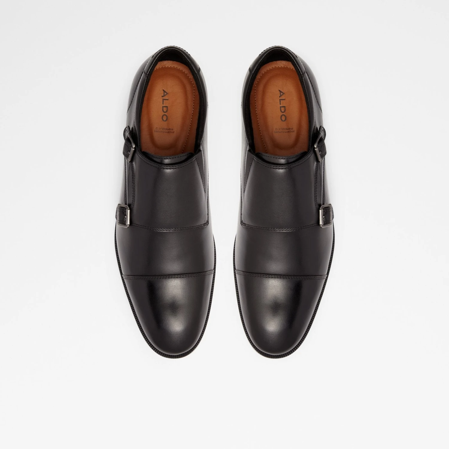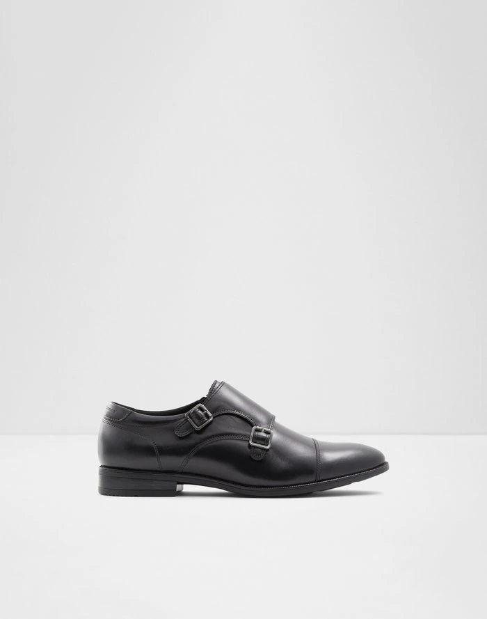 #Style Notes *Sophisticated class is easily achievable with these leather dress shoes detailed with a double monkstrap and chiseled cap toe. Our flex technology promises ultra-flexible soles for comfortable wear, so you can stay light on your feet during late nights out. #Details *Colour: Black *Heel Height: 0.00 In (0.00 Cm) *Heel Type: Flat Or No Heel #Materials *Main Material: Leather *Sole Material: Rubber
