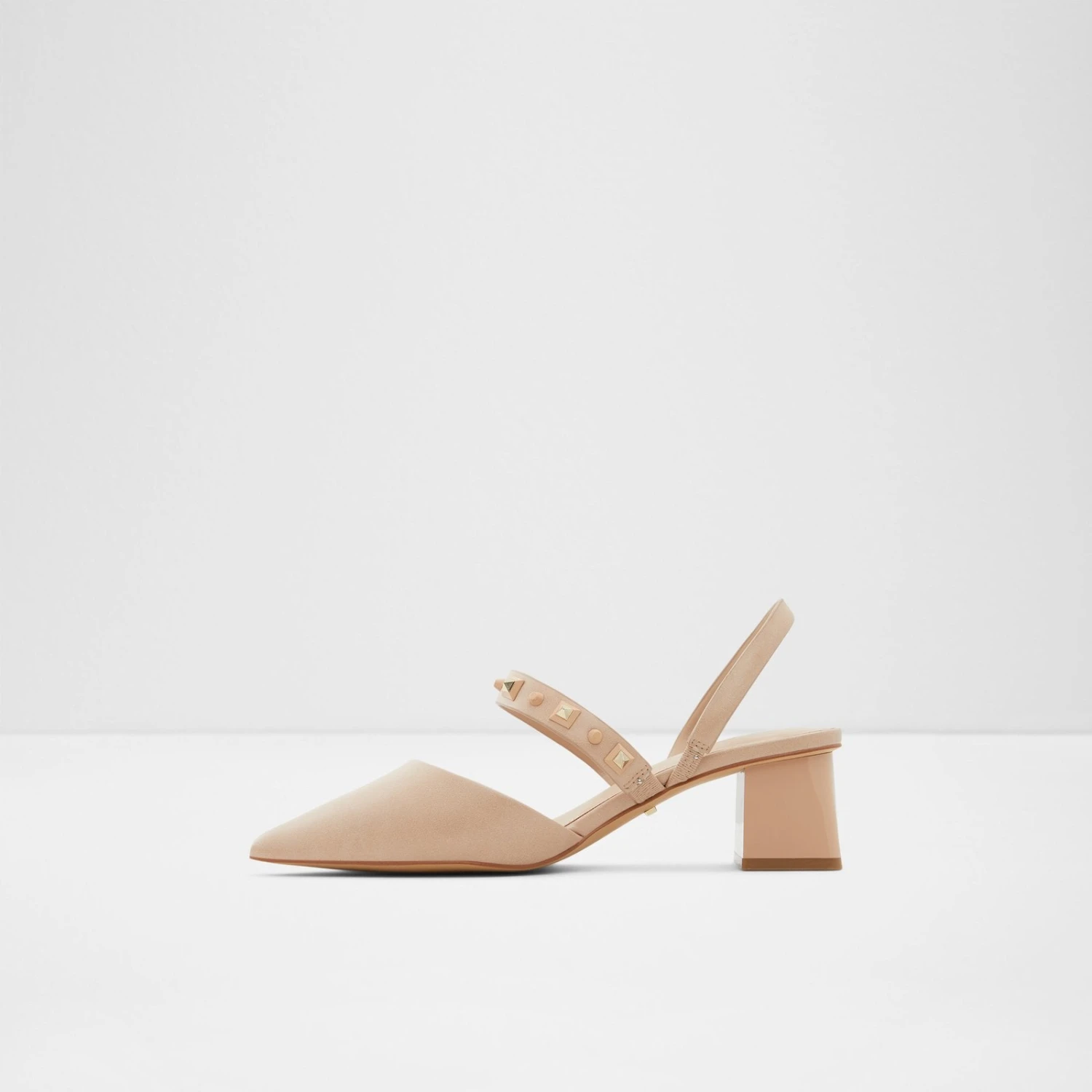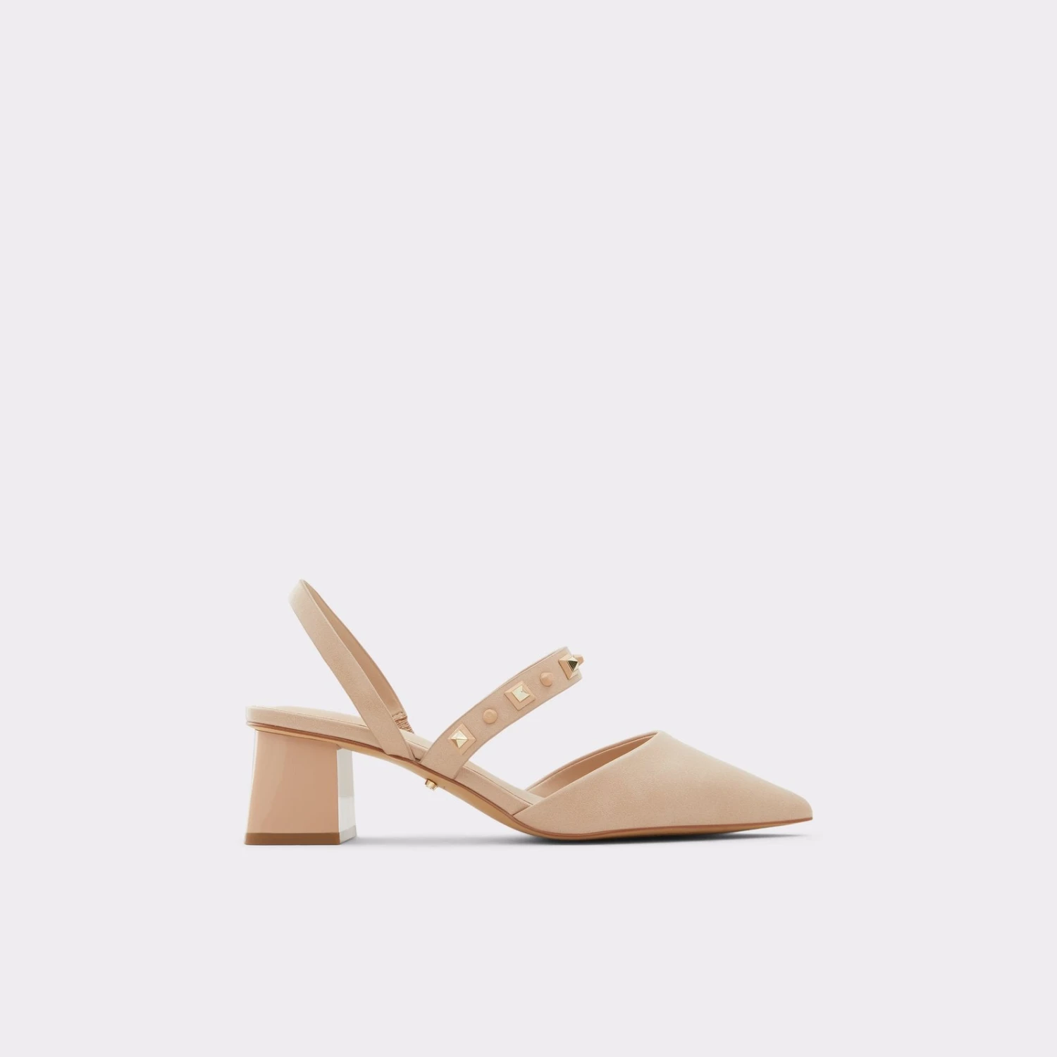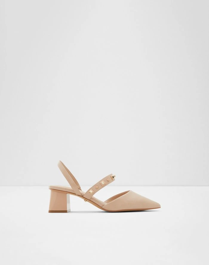 #Style Notes *Minimalist, but still big on style. Studded details add extra oomph to these pointy toe sling backs. Plus, the block heel is the perfect height to sport all season long. #Details *Colour: Bone *Heel Height: 2.00 In (5.08 Cm) *Heel Type: Block (Thick) #Materials *Main Material: Synthetic *Sole Material: Rubber