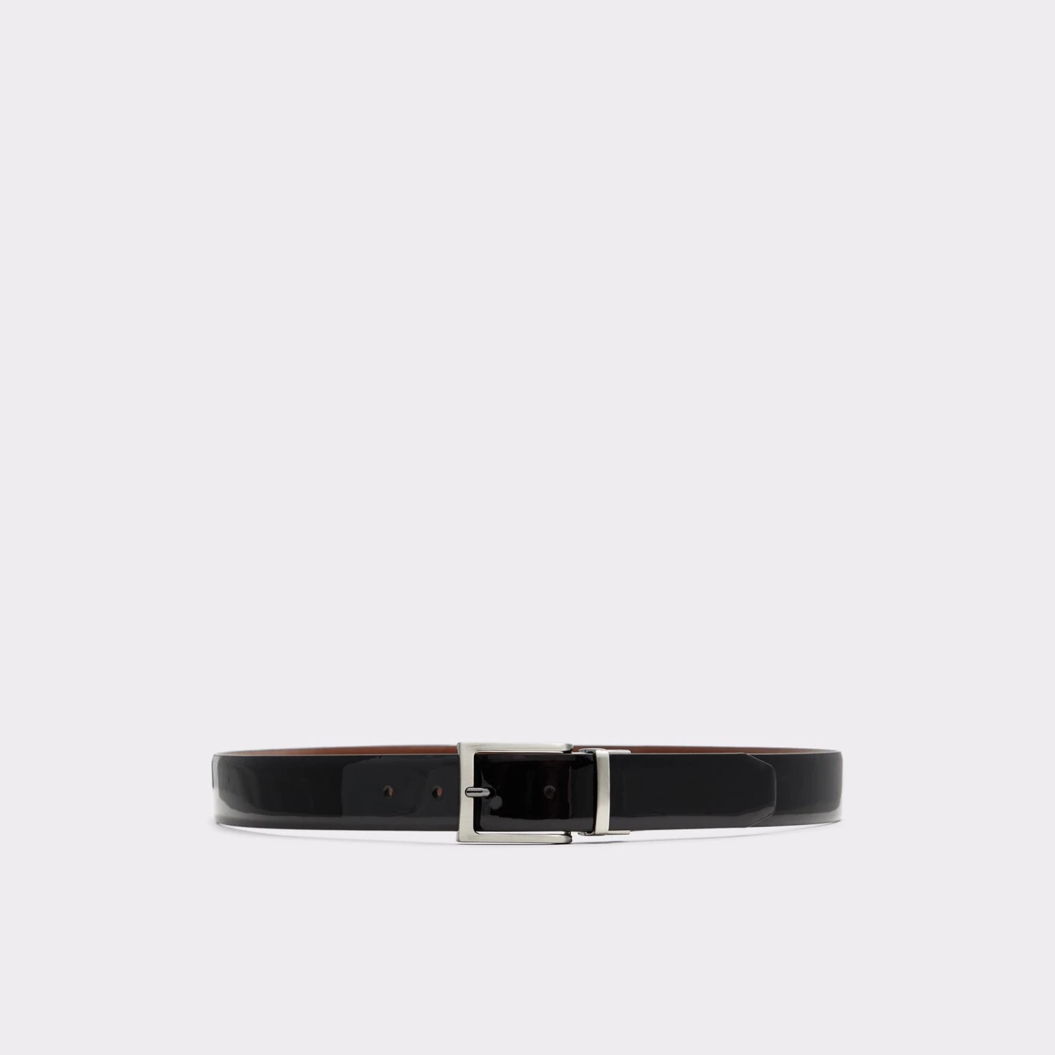 #Style notes *Reversible leather belt with open metal buckle. One side of the belt is black whilst the reverse side of the belt is brown. #Details * Belt * Colour Black