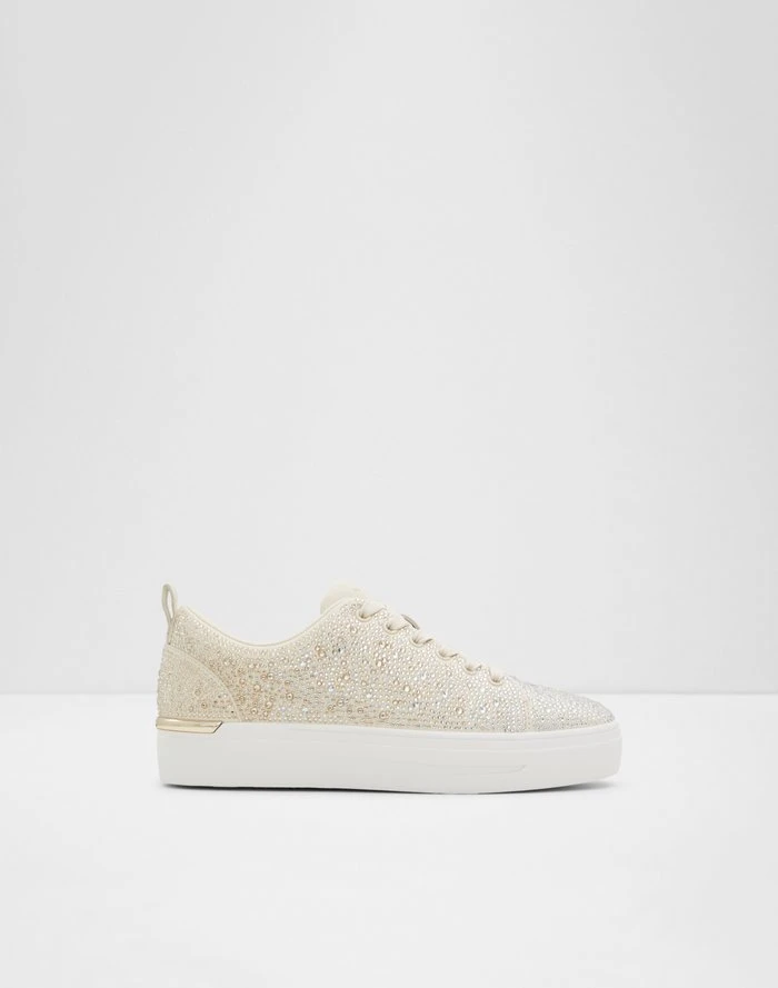 #Style notes *Beauty really is in the detail when it comes to these stunning low tops adorned with tiny rhinestone embellishments. #Details * Low top sneaker * Closed round toe * Platform * Laces closure * Rhinestone embellishment * Colour Natural #Materials *Upper: Synthetic *Main: Mixed materials *Sole: Rubber #Measurements *Heel height: 1.75 inches