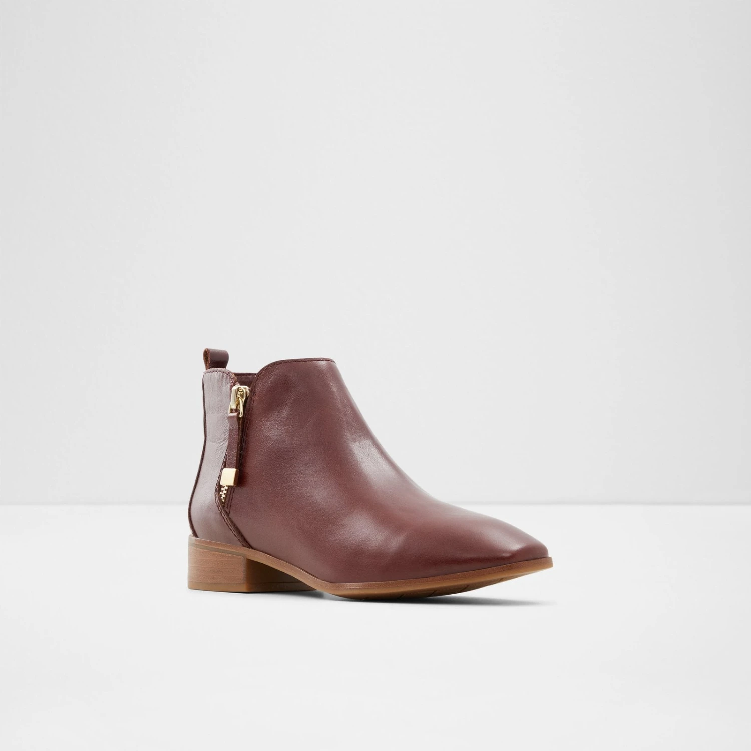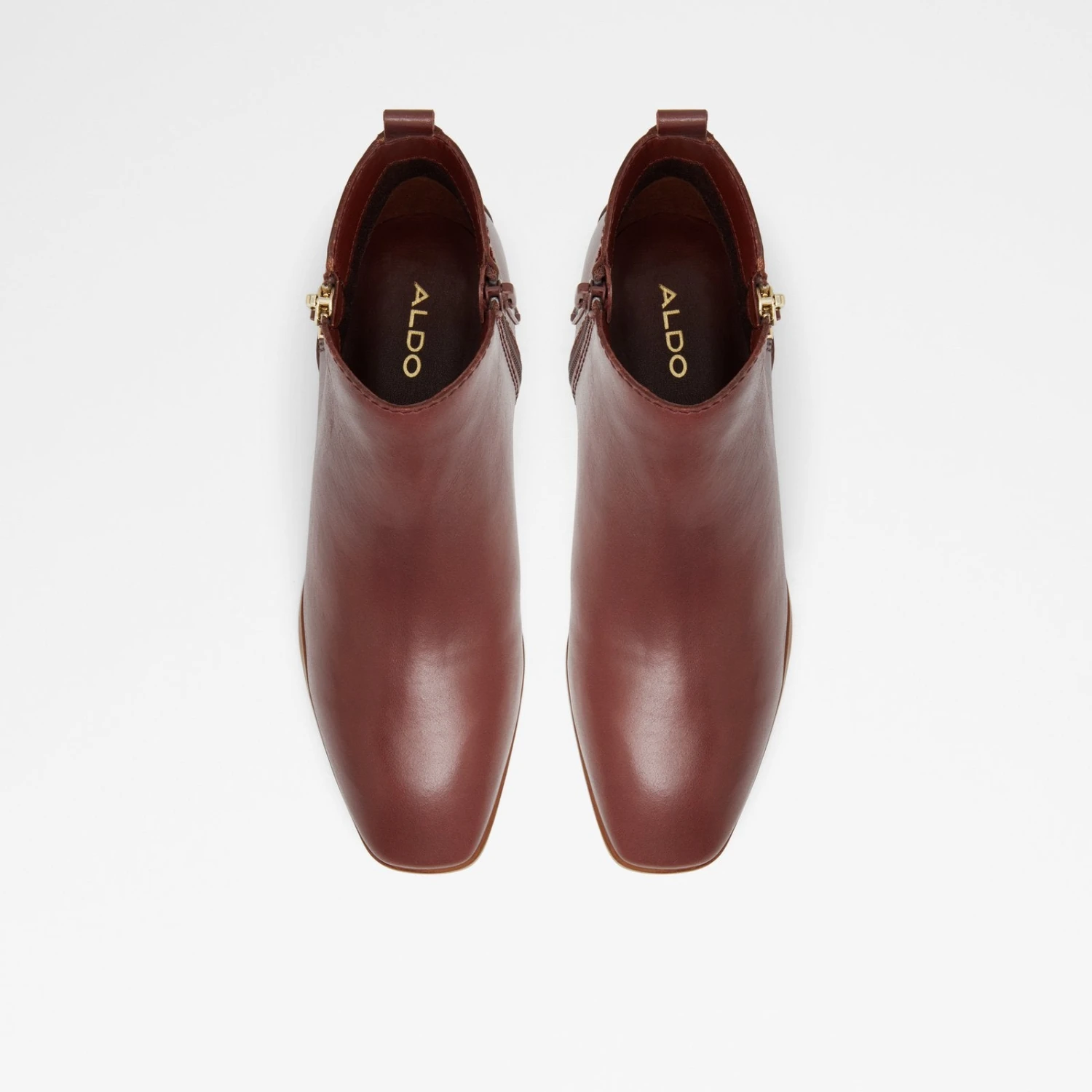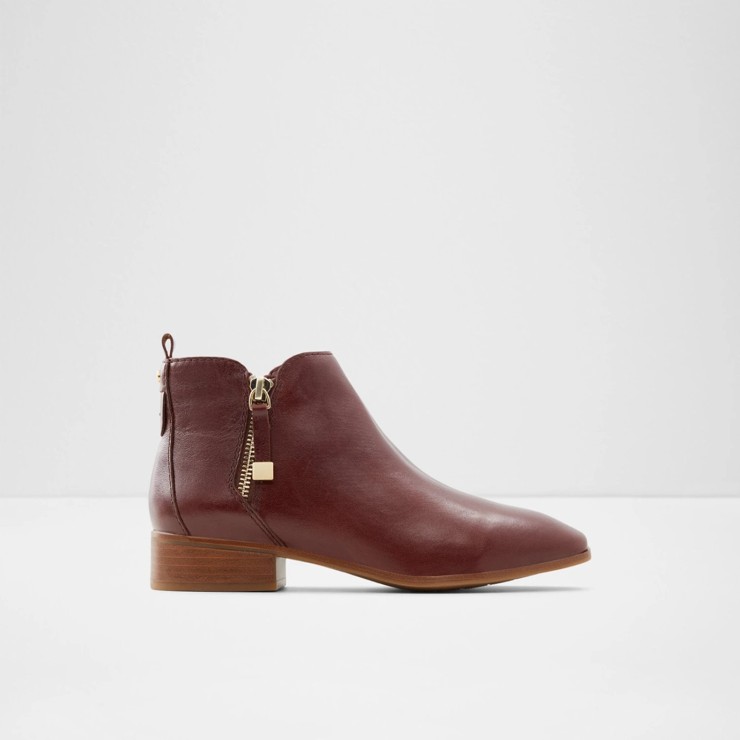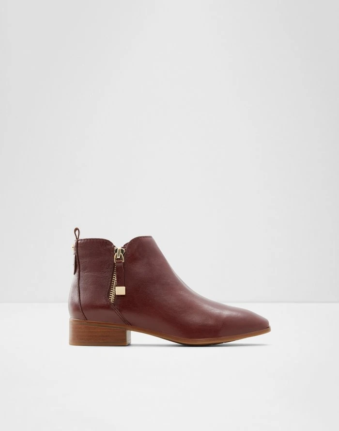 #Style notes *Crafted with a stacked block heel and trendy square toe, these pull-on ankle boots with comfortable flexible soles are the perfect pair for all-day wear! #Details * Ankle boot * Square toe * Block heel * Zipper closure * Stud embellishment * Colour Dark Brown #Materials *Upper: Leather *Sole: Rubber #Measurements *Heel height: 1.0 cm *Shaft Height: 5.5 cm