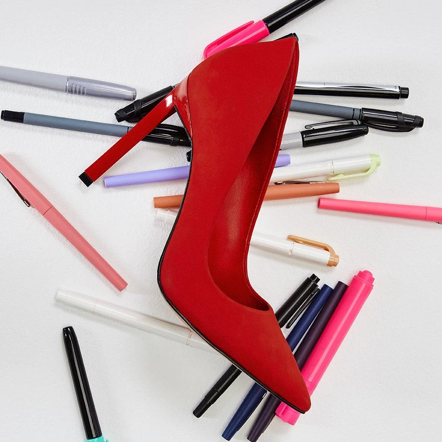 #Style notes *Dressed up or down, these versatile, pointy toe pumps can truly do it all…Because everyone needs a tried-and-true pump! #Details * Pump * Closed pointy toe * Slip-on * Colour Bright Red #Materials *Upper: Leather *Main: Nubuck *Sole: Rubber #Measurements *Heel height: 4.25 inch
