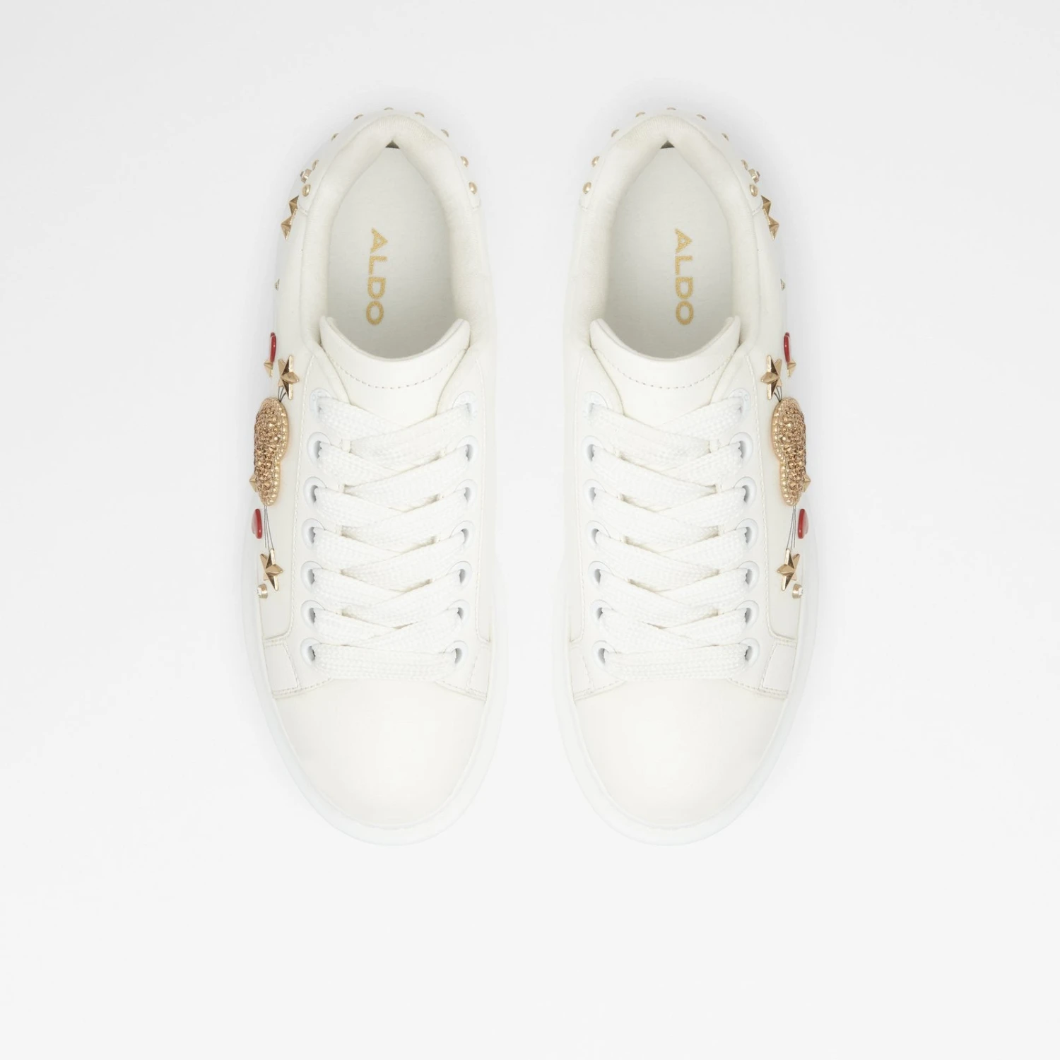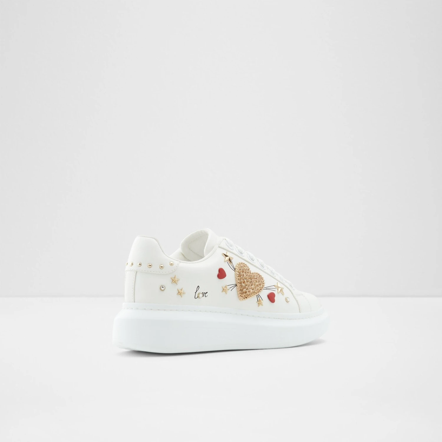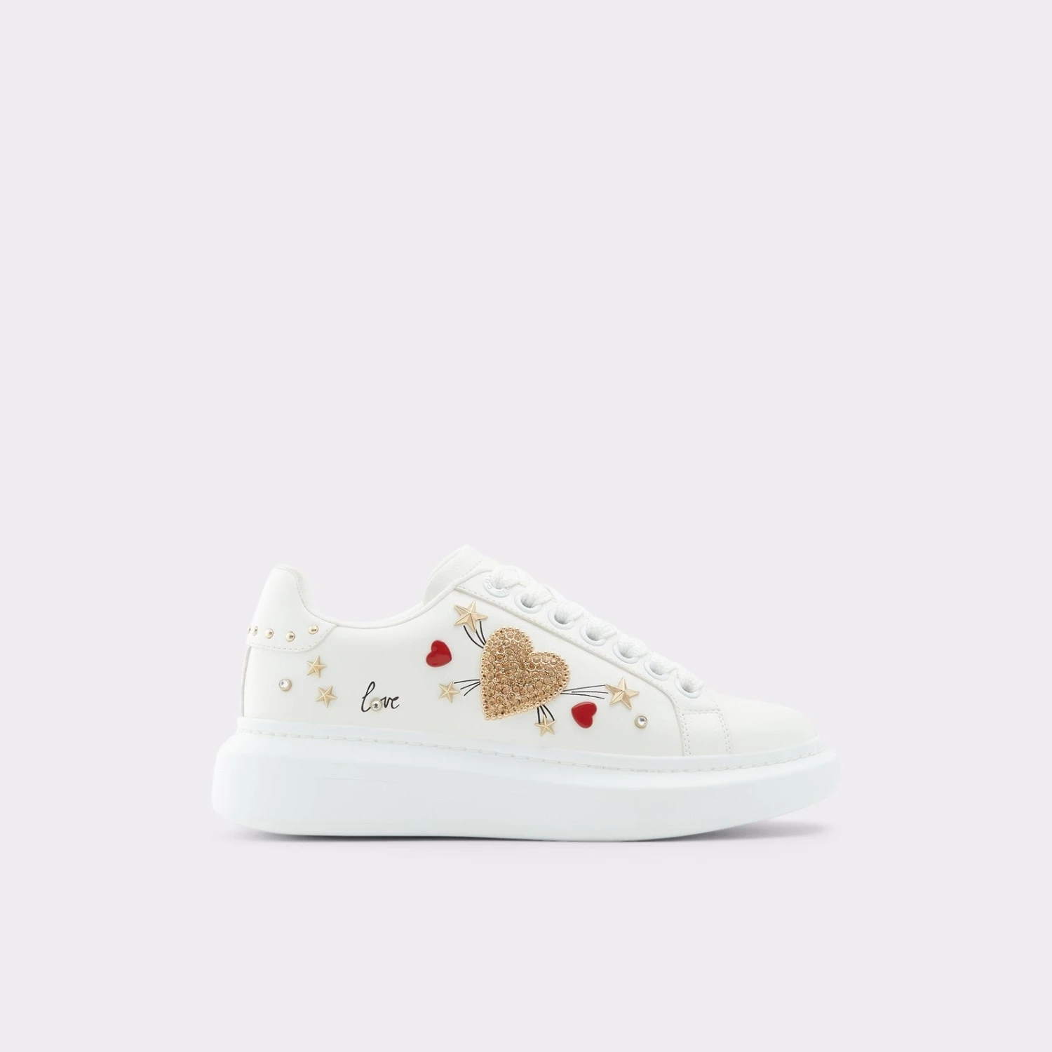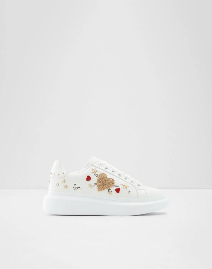 #Style notes *For the love of sneakers! These playful white kicks adorned with heart shaped ornaments are all about standing out. #Details * Sneaker * Round toe * Laces closure * Colour White