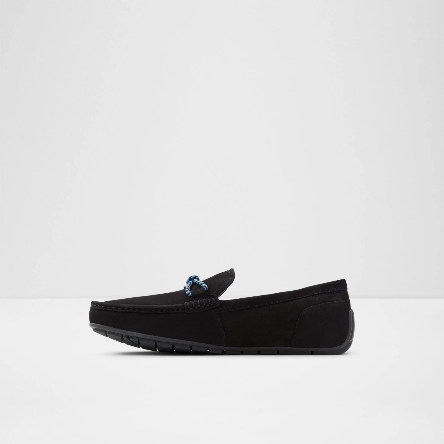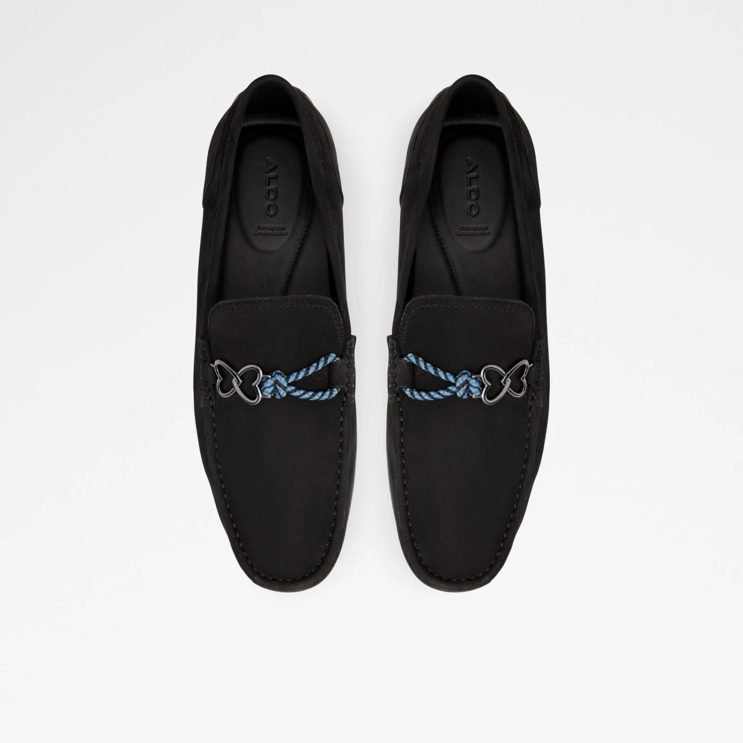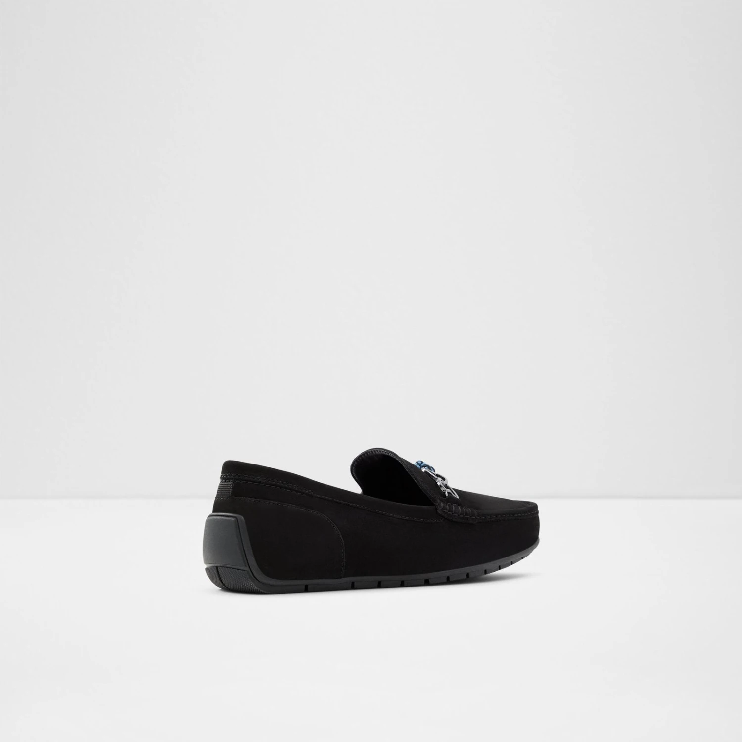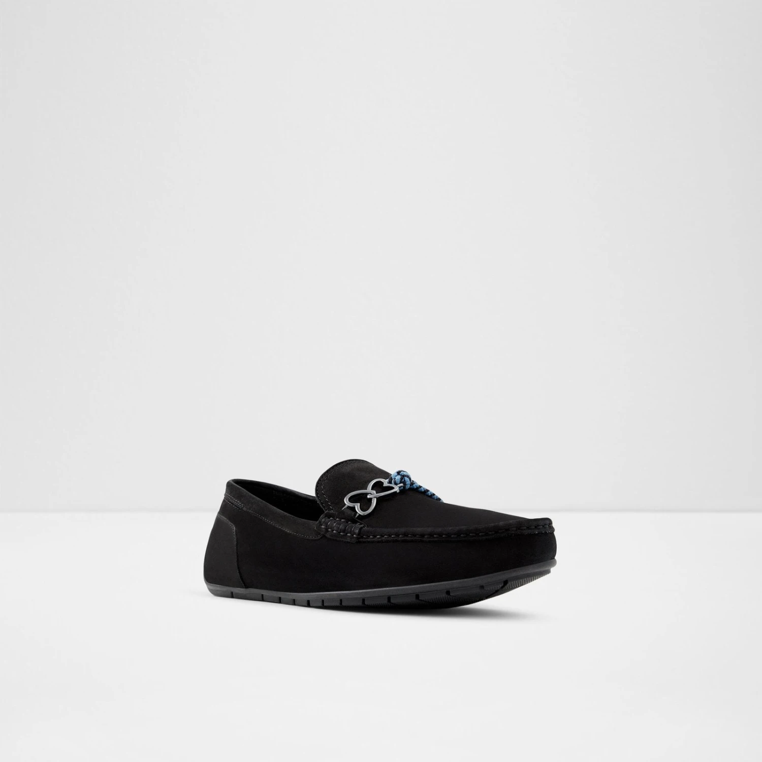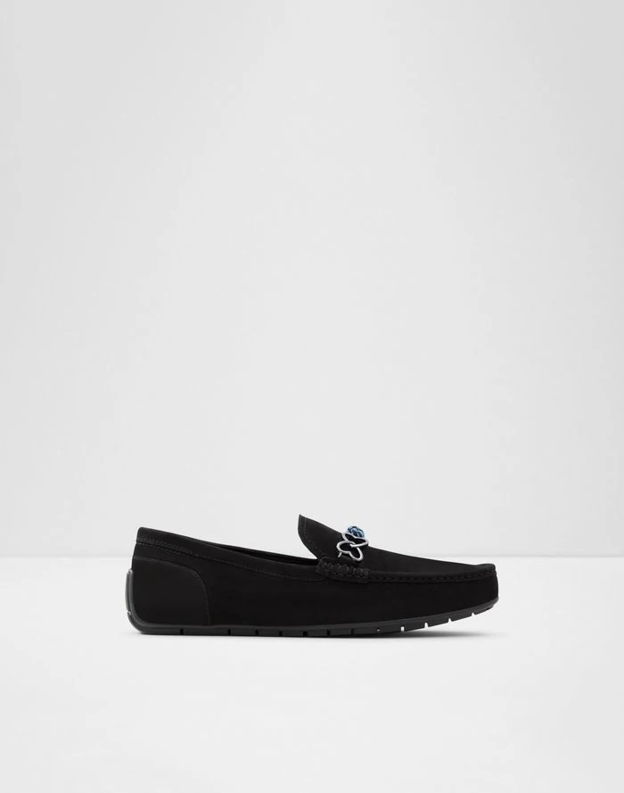 #Style Notes *Your destination awaits. Slip on these driving loafers for a casual style with effortless versatility. Features soft nubuck leather, an almond toe, and a metal ornament. Flexible soles make these an excellent choice for all day wear. #Details *Colour: Black *Heel Height: 0.00 In (0.00 Cm) *Heel Type: Flat Or No Heel #Materials *Main Material: Leather *Sole Material: Rubber
