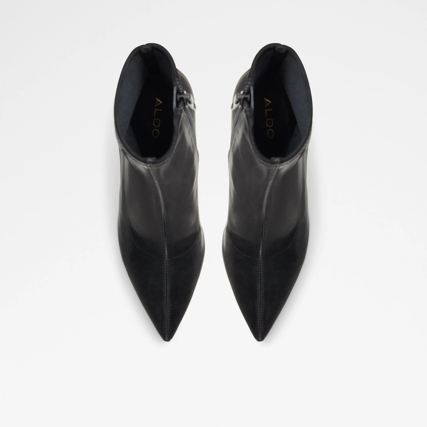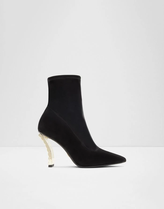 #Style notes *Featuring a standout heel design, these bold booties serve maximum style with minimal effort. Now that’s fitting! #Details * Closed pointy toe * Zipper closure * Colour Black #Materials *Upper: Synthetic *Main: Shiny *Sole: Rubber #Measurements *Heel height: 3.75 cm