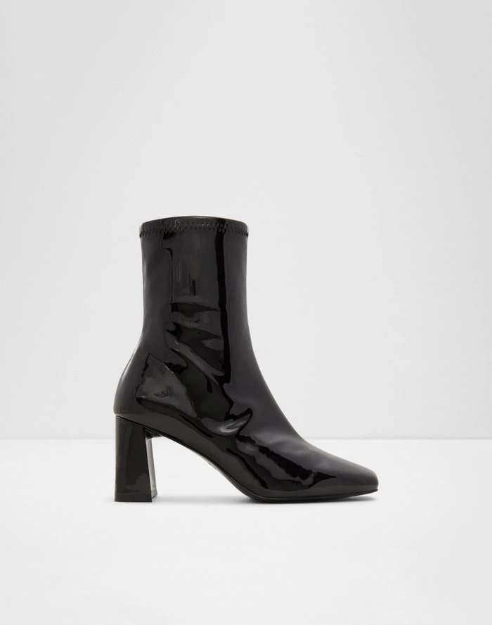 #Style notes *Sculpted block heel and trend-right square toe make these everyday booties a wardrobe staple. #Details * Chelsea boot * Closed round toe * Block heel * Zipper closure * Colour Black #Materials *Upper: Synthetic *Main: Patent *Sole: Rubber #Measurements *Heel height: 3.0 inches *Shaft Height: 7.0 inches